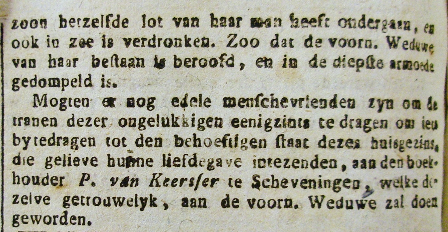 Zijn zoon Johannes, - verdronk in maart 1817 op de pink 'Jonge Johanna.'