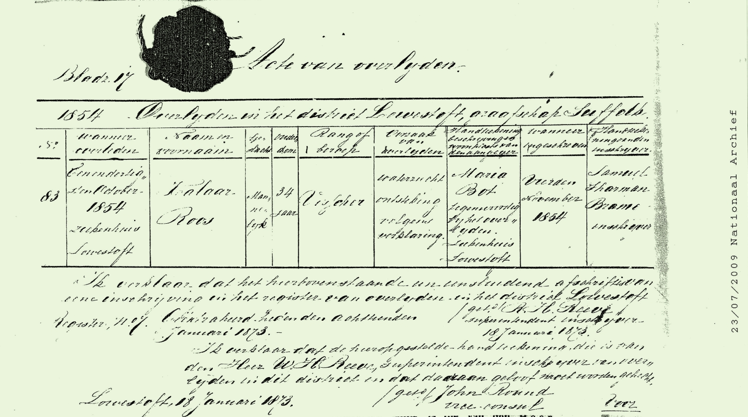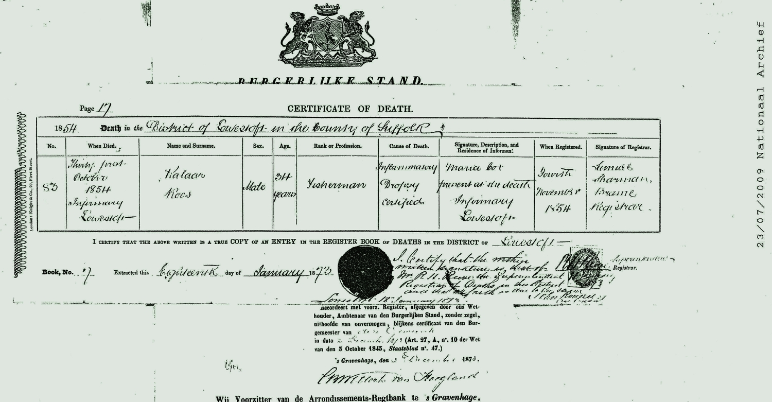 Te Lowestoft in het ziekenhuis overleden.