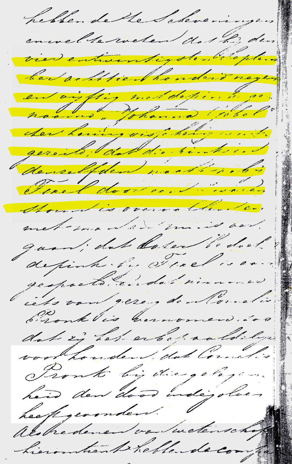 Mos vond de staat van het vaartuig te slecht om deze terug te halen naar Scheveningen. De pink vertoonde verscheidene gaten in de boeg en langsscheeps zaten meerdere barsten, zo zwaar had het vaartuig tijdens de vermoedelijke aanvaring en stranding geleden. Goederen die niet konden worden meegenomen werden aan de plaatselijke strandvonder toevertrouwd. In januari 1861 kreeg rederes E. Gébel ƒ 1200,00 van het verzekeringfonds uitgekeerd voor het verlies van haar visserspink. In juli bracht de verkoop van de opgeslagen goederen nog ƒ 655,00 op.