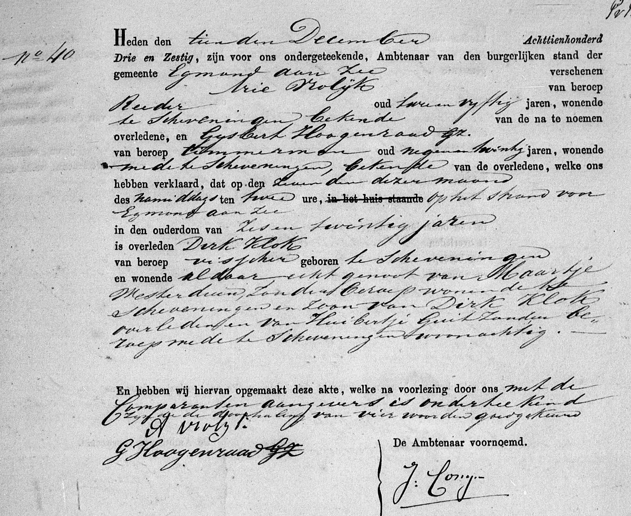 * Dirk Klok: zijn vader Dirk verdronk in februari 1854 op de schuit 'Zeemanshoop.'