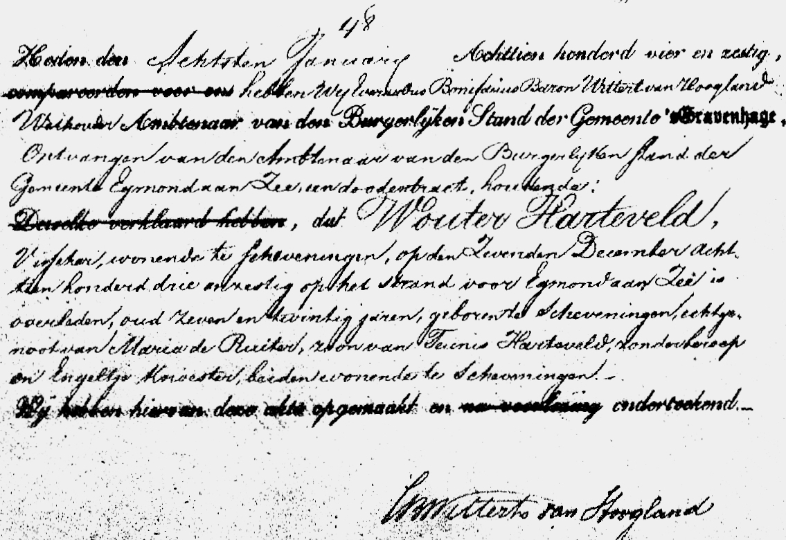 * Huibert Batenburg, Wouter Harteveld, Dirk Klok en Adrianus Overduin spoelden op 7 december op het strand bij Egmond aan/zee aan.