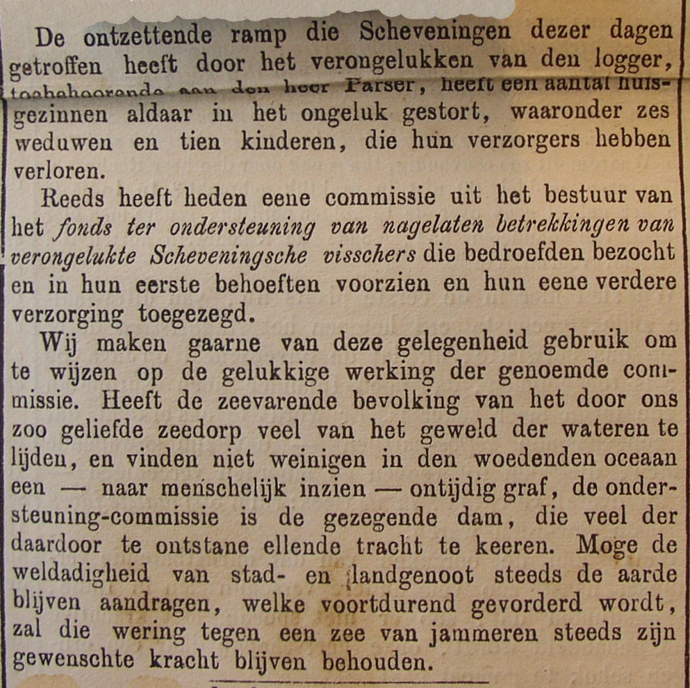In de eerste week van oktober 1867 verging er voor de eerste maal een loggerschip. Het scheepstype zelf was in 1866 door de Scheveningse reder A. E. Maas in de vaart gebracht. In navolging van Maas kocht, de in Scheveningen wonende, reder en koopman Marcus Parser eveneens een logger aan. In tegenstelling tot de eerste drie loggers van Maas, die drie masten hadden, had deze slechts twee masten. De logger werd op het Simonszand - een klein Waddeneiland tussen Schiermonnikoog en Rottumerplaat - geworpen. Na het bericht dat er nog drie lijken in het wrak waren aangetroffen vertrokken de reder Marcus Parser en Pieter van der Harst -opzichter der kustverlichting- naar het kleine eiland. Twee van de drie lichamen waren van hun kleren ontdaan, aldus het bericht. Toen reder Parser en zijn mannen ter plekke kwamen bevond zich nog slechts het lijk van de 64-jarige Arie Verbaan in het wrak. Maar er was meer te zien. Op het wrak was de plaatselijk bekende jutter Joap Tjerks bezig om met een bijl het touwwerk van het wrak te kappen. Om het lijk van Scheveninger Arie Verbaan bekommerde hij zich niet. Op de vraag van Parser of hij soms meer lijken had gezien werd een brutaal en onverschillig antwoord gegeven. Het werd destijds niet voor onmogelijk gehouden dat de jutter Tjerks de andere twee lijken aan de zee had teruggegeven, nadat hij ze eerder van hun kleren had ontdaan.