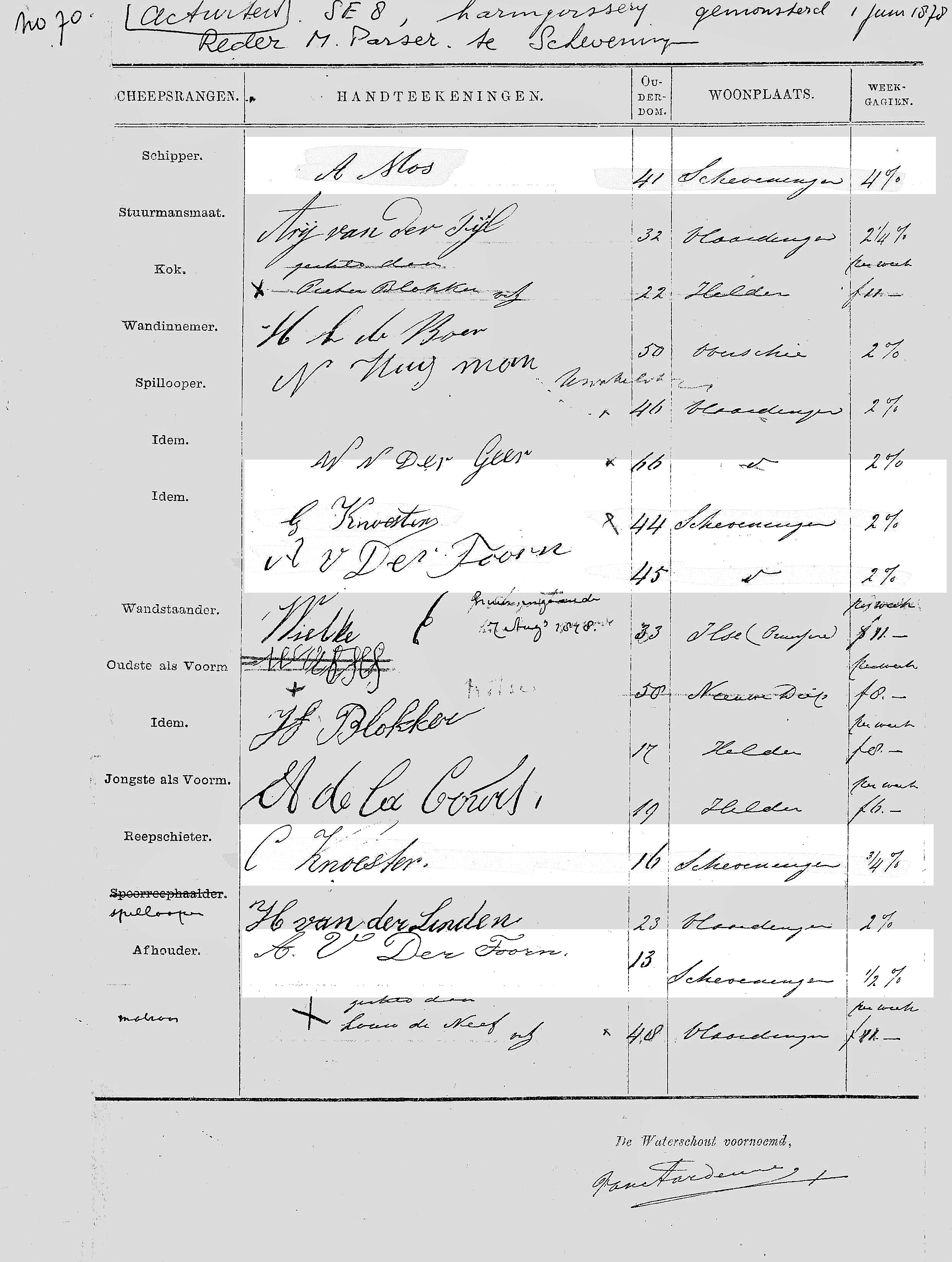 * De overige bemanning kwam van: Vlaardingen, Den Helder, Nieuwendiep, Overschie en Pruisen (Dld.)