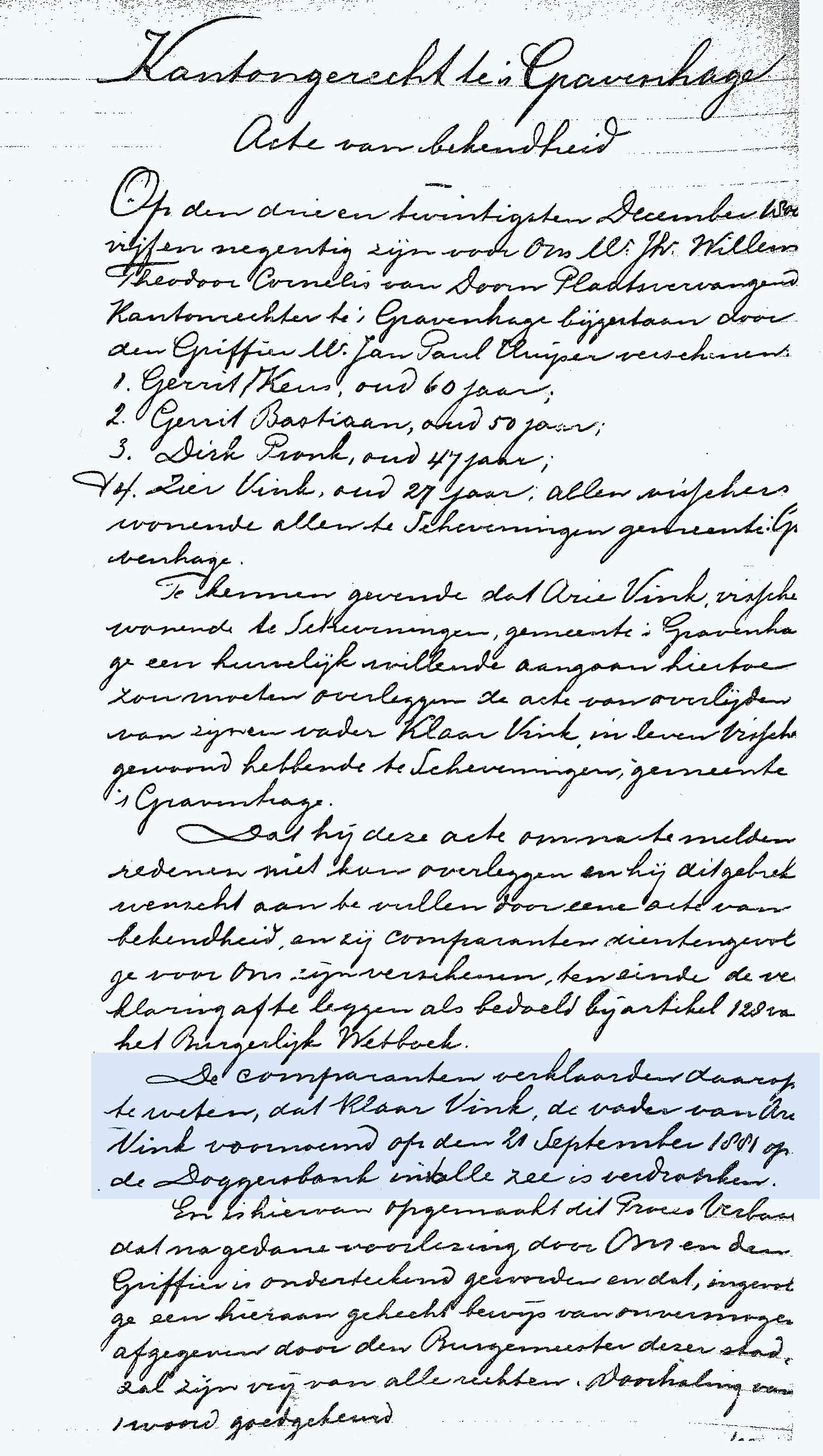 * Maarten Pronk: zijn lichaam werd gevonden en geconserveerd in zout naar Scheveningen gebracht. Zijn vader Dirk verdronk in 1860 op de ‘Vrouw Engeltje’.