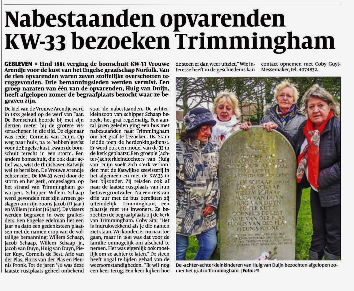 Op de Katwijker bomschuit -die met man en muis verging- bevond zich één geboren Scheveninger. Teunis Pronk was met zijn gezin in augustus 1881 in Katwijk a/zee gaan wonen.