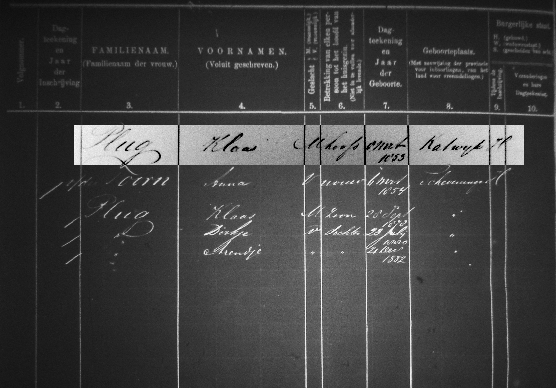 * Klaas Plug was in 1853 te Katwijk geboren en vertrok na zijn huwelijk in 1875 naar Scheveningen.