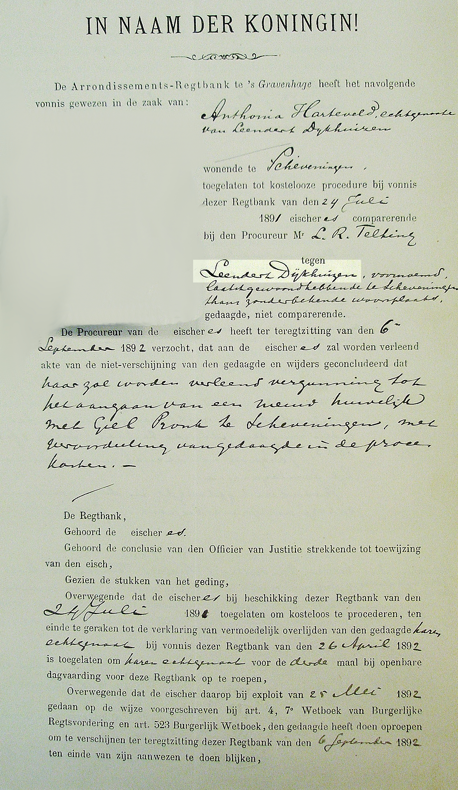 In de eerste week van februari was de bomschuit Avontuur naar de visgronden vertrokken maar in de derde week van die maand was er nog steeds niets van het schip vernomen. En het had gestormd in die voorgaande weken zodat de ongerustheid toeslag. Bovendien was na het slechte weer de windrichting Noord- en Noordwest gebleven- dus gunstig om thuis te zeilen- waardoor men allang in havens als Nieuwendiep of IJmuiden had kunnen binnenlopen stelde men destijds. In de derde week werd door de bemanning van de Scheveningse bomschuit Heiligerlee een vaatje petroleum aangebracht wat afkomstig van de Avontuur bleek te zijn. Ook de leverancier, die werd opgeroepen, herkende zijn artikel. Ook de oorspronkelijke stuurman/schipper van de Avontuur Arie Leenderd Dijkhuizen, die door ziekte juist die reis moest thuisblijven, herkende het vaatje. Al in mei liet de rederij van de weduwe P. Krul op de Vlaardingse werf Van Dam een logger bouwen. Het was haar eerste kielschip en zij gaf het de naam Avontuur. Schipper daarop werd de fortuinlijke Arie Leenderd Dijkhuizen.