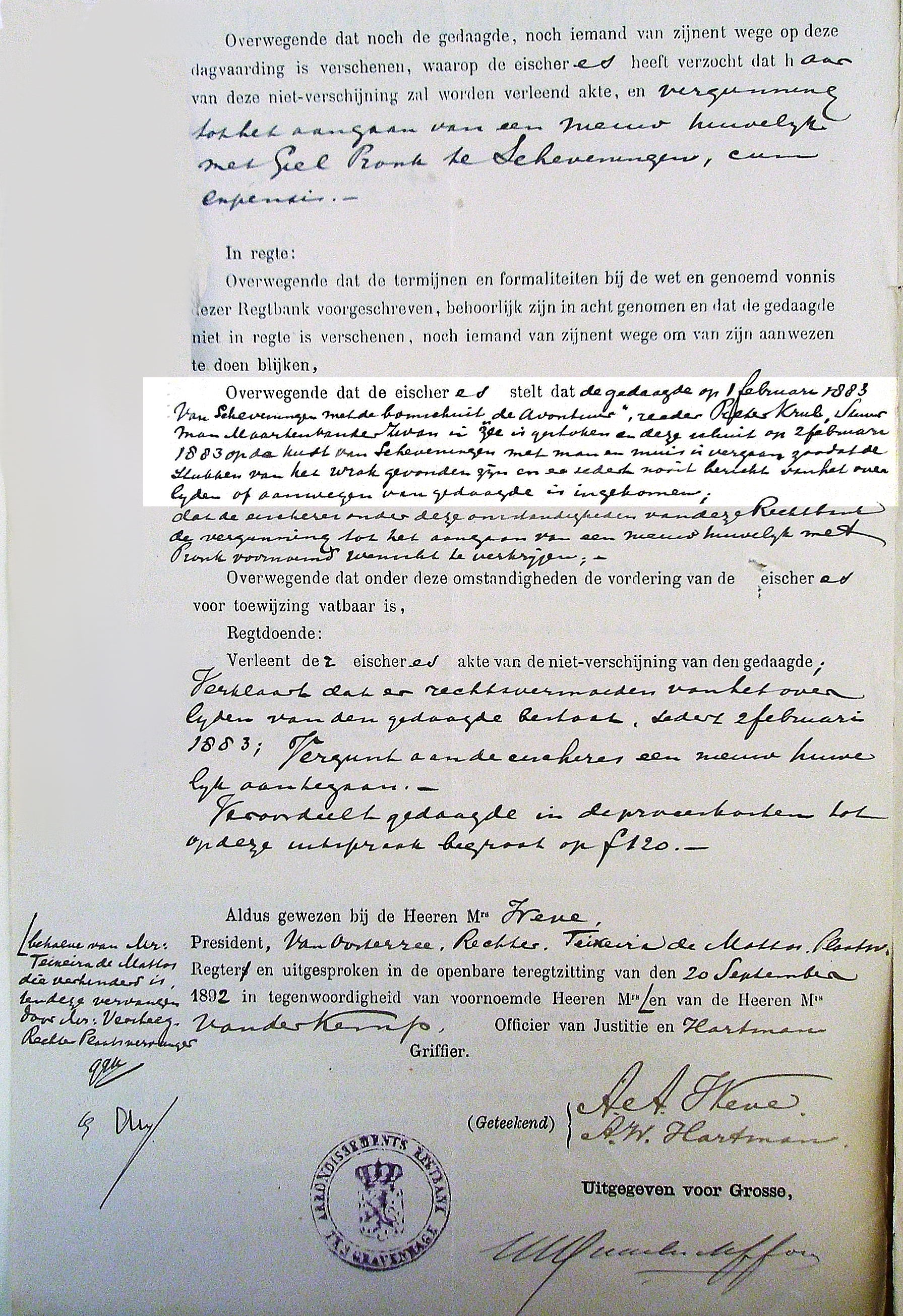 * Het was tijdens het onderzoek moeilijk vast te stellen wie er in 1883 op welk schip in februari en maart omkwamen. Er kan dus een afwijking in zitten. Vast staat dat de genoemden in ieder geval in die maanden van 1883 omkwamen.
