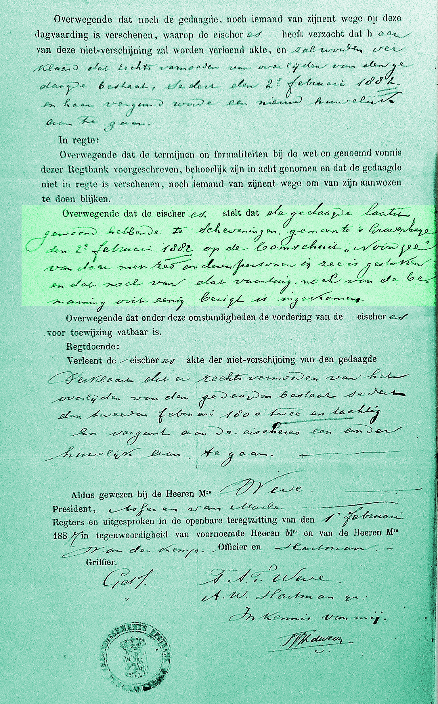 * Cornelis Dijkhuizen: In zijn 'rechtsvermoeden van overlijden' staat ten onrechte dat de schuit op 2 februari 1882 zou zijn vertrokken. Dit moet echter 1883 zijn.