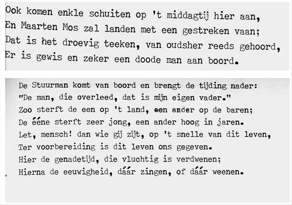 Met ingenomen pronkvaan landde op de 26e oktober de bomschuit te Scheveningen. Schipper Mos had een droevige tijding. Zijn eigen vader was tijdens de reis overleden.