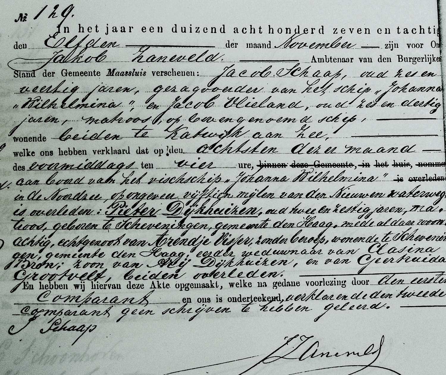 Op circa 15 mijl van de Nieuwe Waterweg overleed Pieter Dijkhuizen.