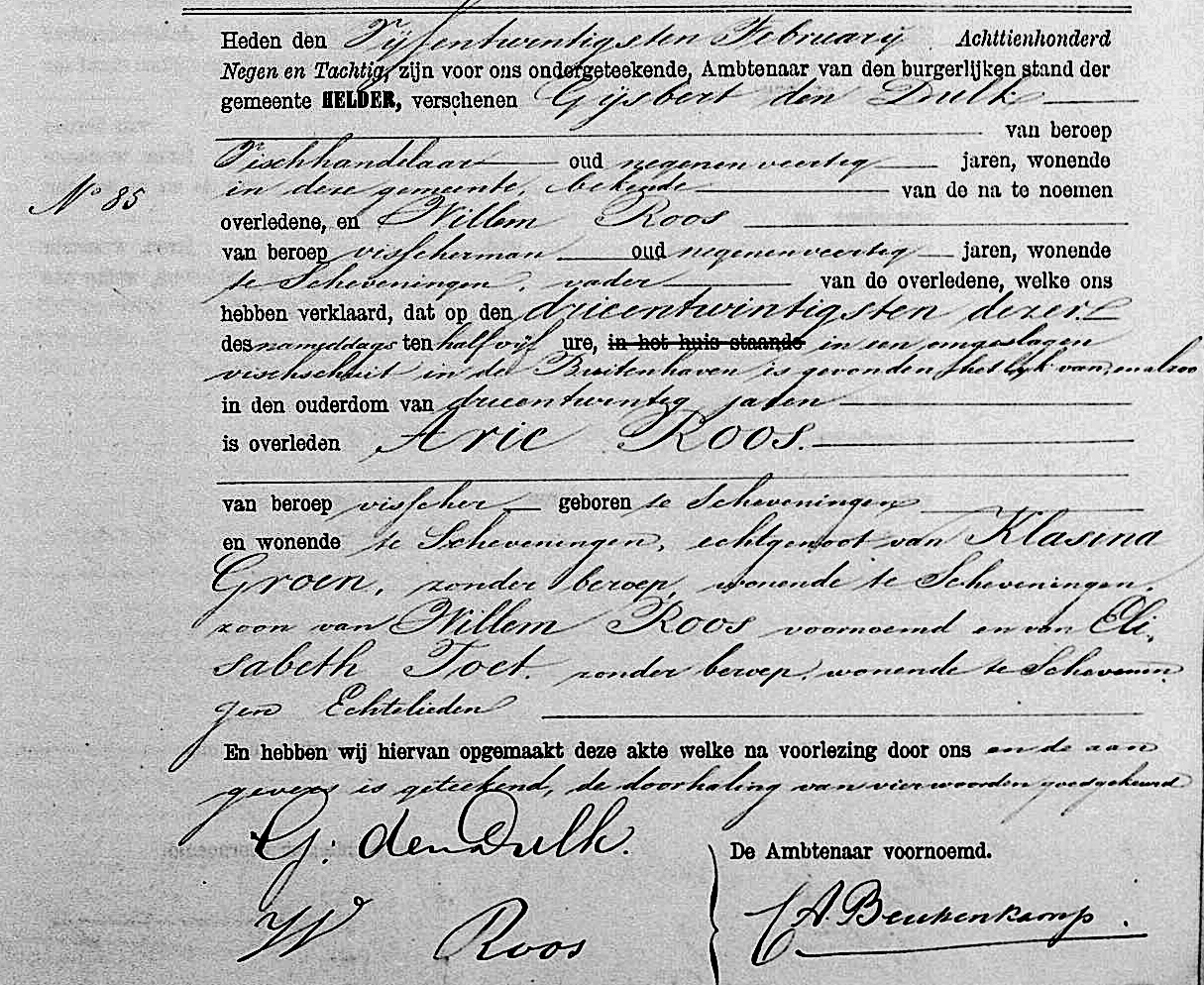 Arie Roos (23) en Arie Roos (18) zijn broers. De vermiste 18-jarige Arie Roos is op de 9e maart door een Katwijker bomschuit uit zee aangebracht.