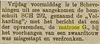 Op 22 juni werd te IJmuiden door de Loodskotter nr. 9 het lichaam aangebracht van de visser Leendert Evert Groen. Vader Jacob Groen was naar IJmuiden gereisd voor identificatie en aangifte van het overlijden van zijn zoon.