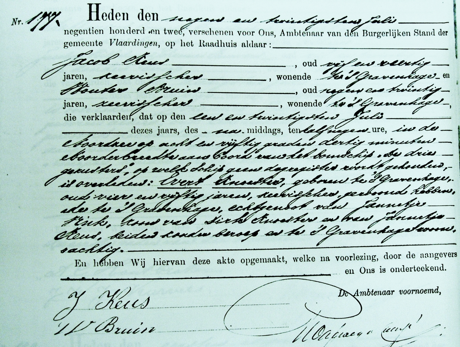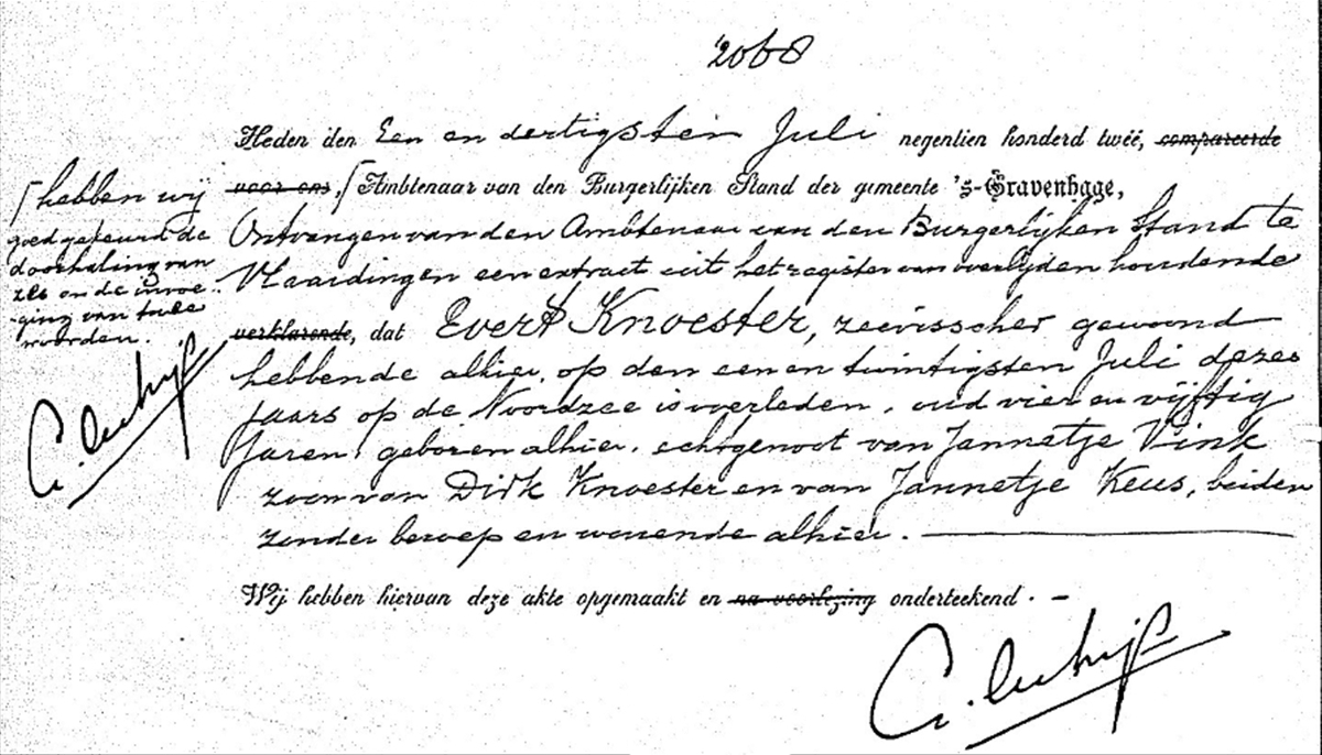 Aan boord van de bomschuit overleed Evert Knoester waarna hij te Vlaardingen werd begraven.