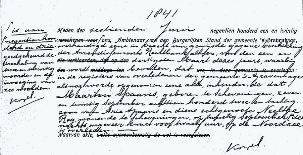 Cornelis Spaans: in het Bevolkingsregister 1895-1913 wordt het foutieve jaartal 1904 vermeld.