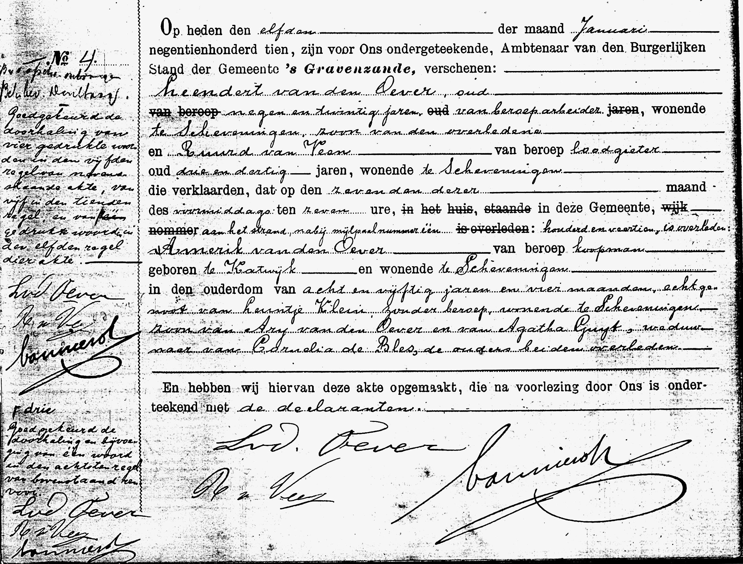 Op het strand ter hoogte van strandpaal 114 - gelegen tussen Hoek van Holland en ’s-Gravenzande- werd het lichaam van Amerik van den Oever gevonden. Het lichaam werd in een kruipende houding aangetroffen zodat werd aangenomen dat Van den Oever zwemmend het strand heeft weten te bereiken maar door uitputting is overleden. Op dezelfde dag werd door de stoomreddingboot van Hoek van Holland ‘Prins der Nederlanden’ een mast en een zeil van de botter aangebracht. Het scheepje zelf lag als wrak op een van de Delflandse hoofden en werd nog met haken doorzocht op lijken. Aan de overblijfselen van de botter was op te maken dat het scheepje was overstoomd waarbij de zoon -Arie van den Oever- direct overboord moest zijn geslagen. Op de 23e januari kwam vlak voor de buitenhaven van Scheveningen het lichaam van Arie van den Oever aandrijven zodat ook hij ter aarde kon worden besteld. Van het schip welke de botter had overstoomd is niets bekend geworden.