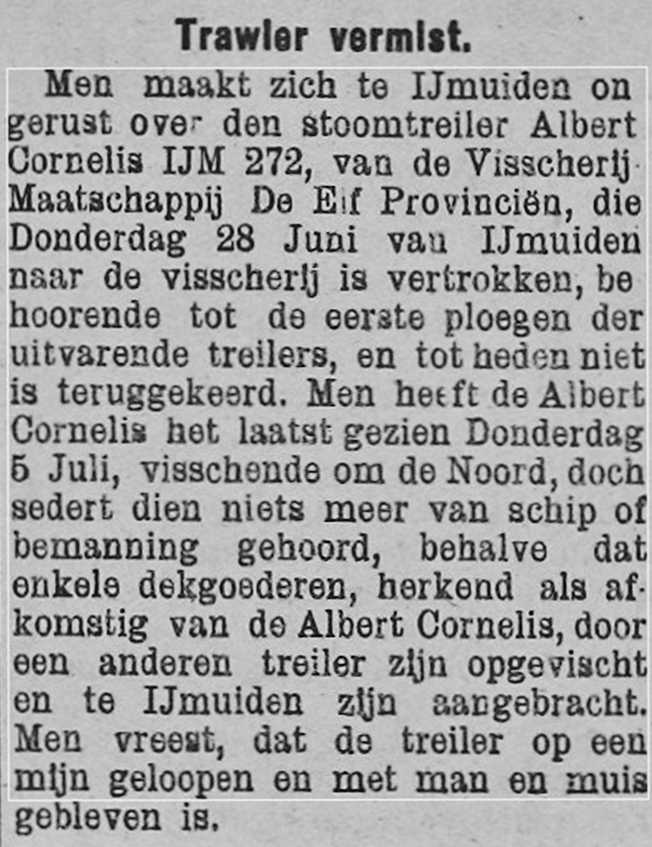 Cornelis de Niet: zijn zoon Johannes,- kwam in augustus 1918 om op de SCH 402 'Huibertje'.