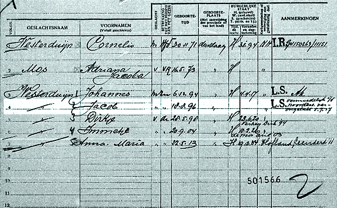 Jacob Westerduijn: zijn broer Johannes- kwam in april 1941 om op de SCH 135 'Cornelia Maria'
