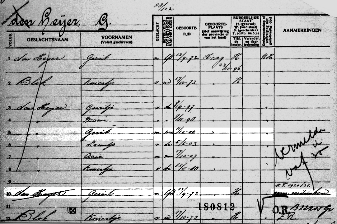 Gerrit den Heijer (44) en Gerrit den Heijer (16) zijn vader en zoon. De familie was in 1916 naar IJmuiden (gemeente Velsen) verhuisd. Kort na de ramp kwam de weduwe Den-Heijer-Blok met de overige kinderen weer terug naar Scheveningen.