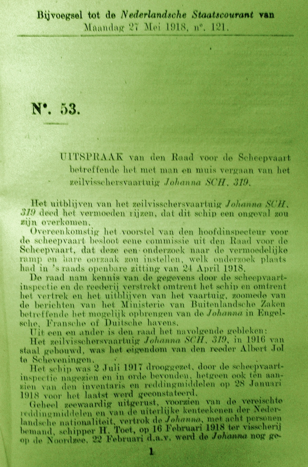 Mogelijk door oorlogsomstandigheden vergaan. (1918)