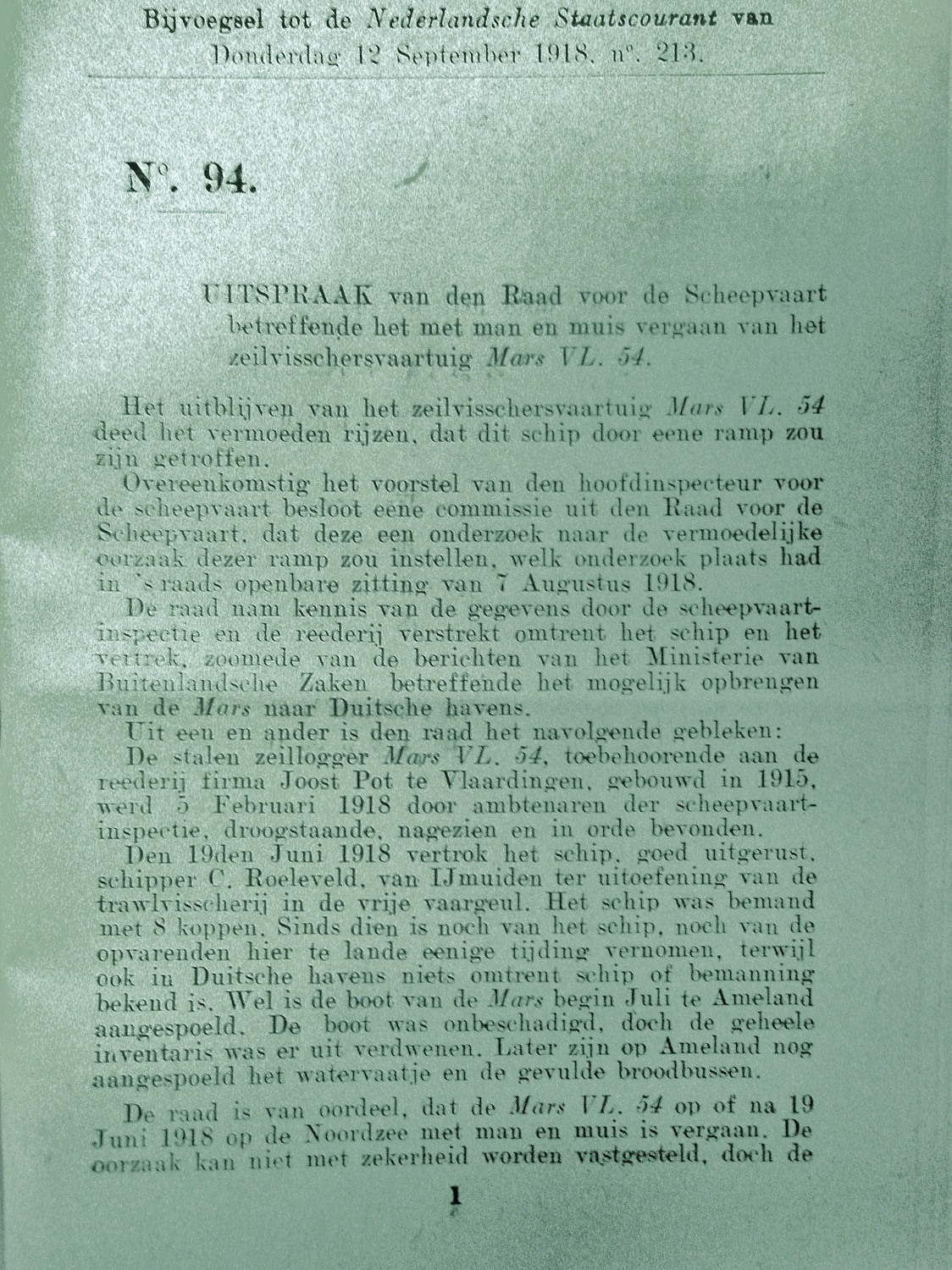 Mogelijk door oorlogsomstandigheden vergaan. (1918)