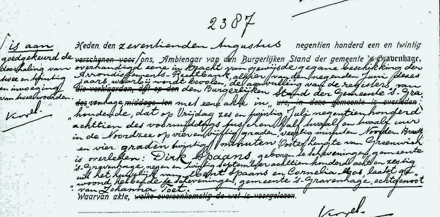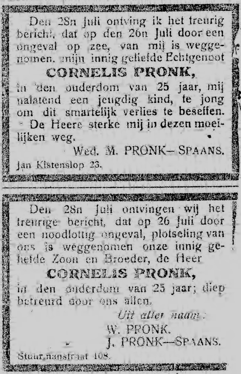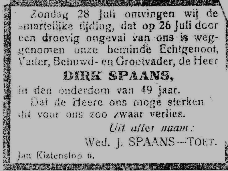 * Dirk Spaans: zijn zoon Ment- kwam in oktober 1927 om op de SCH 421 'Adelaar.'