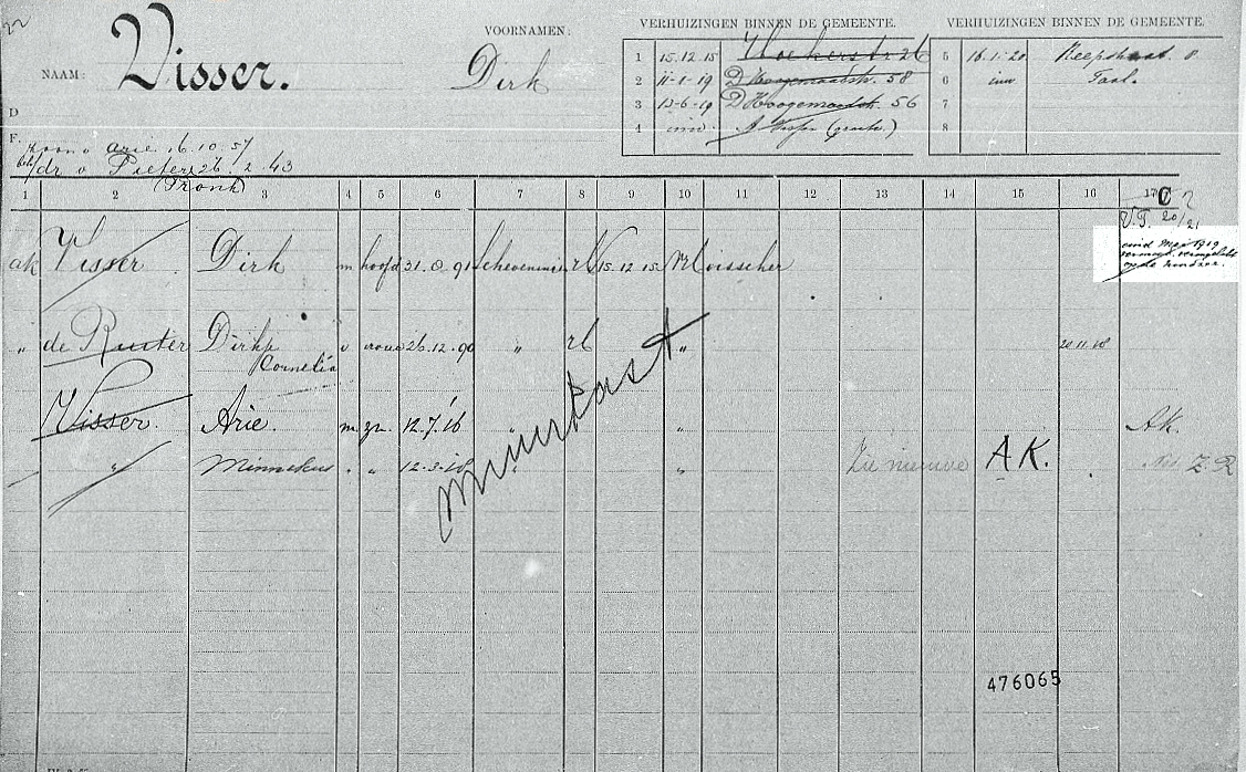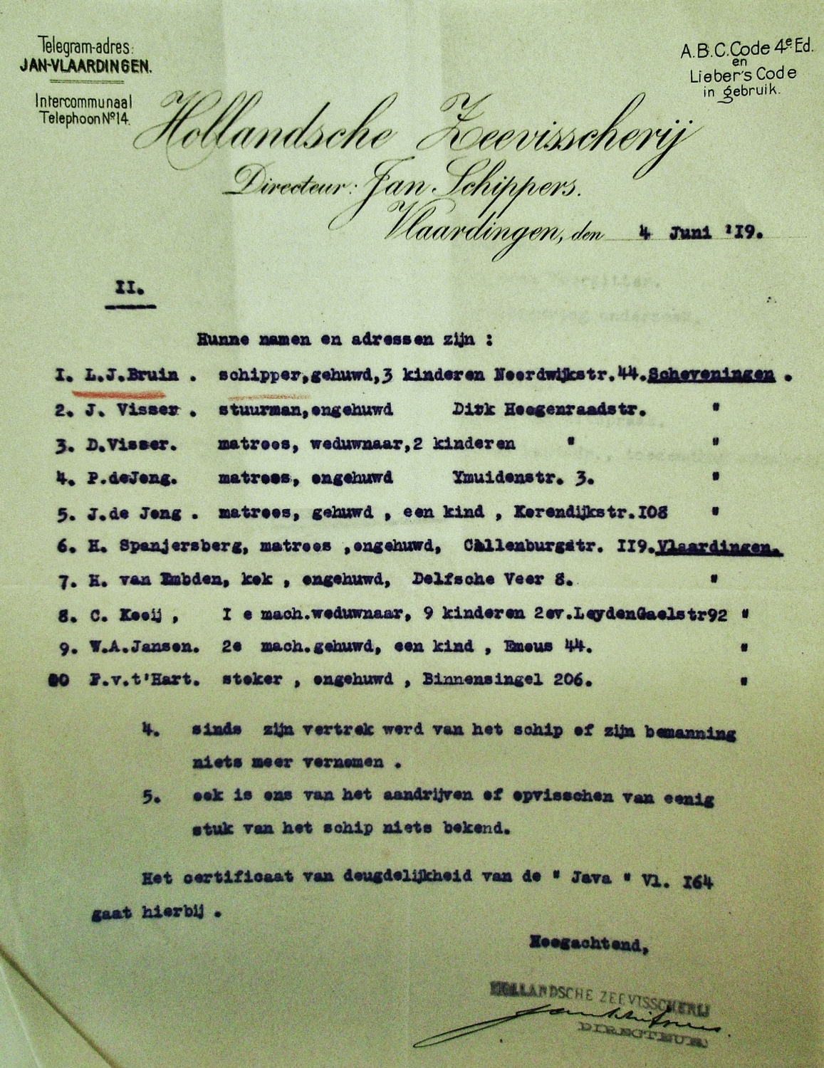 De broers Johannes- en Dirk Visser verloren eerder in mei 1917 hun broers Arie- en Jan Leendert op de HVH-2 'Simon'. Hun ouders -het echtpaar Visser-Pronk- verloren dus vier zoons. Zie daarvoor Algemeen afbeelding 5.