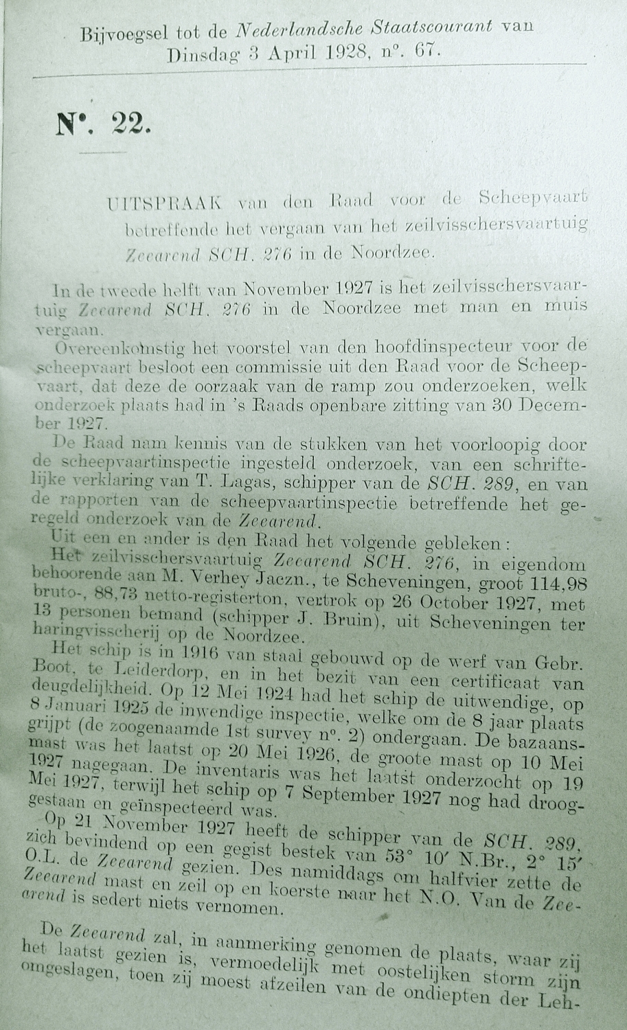Tijdens storm vergaan. (1927)