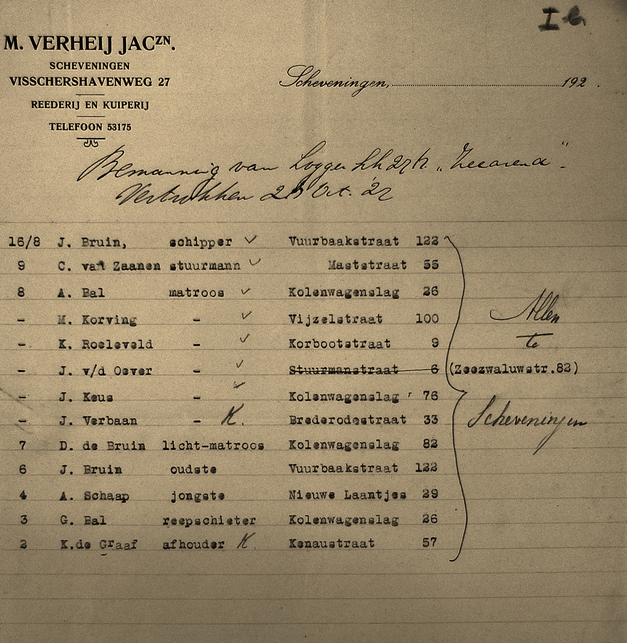* Johannes Huibert Verbaan: zijn vader Arie,- en zijn broer Daniël verdronken in september 1918 op de SCH 106 'Petronella'.
