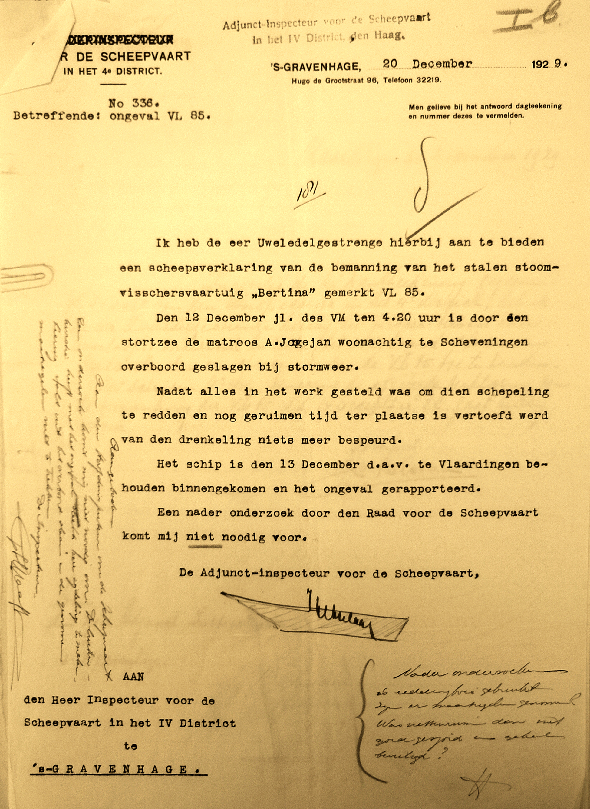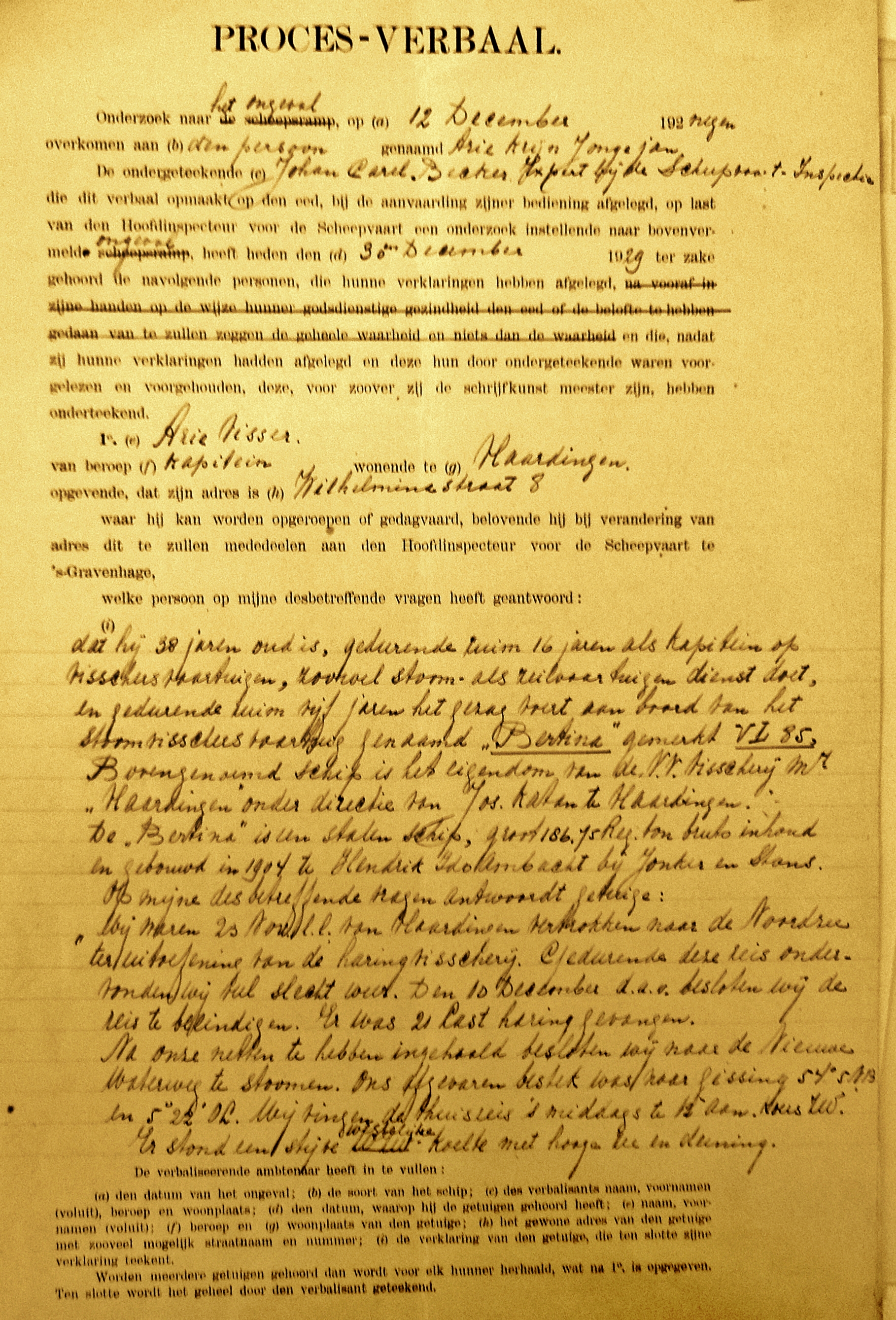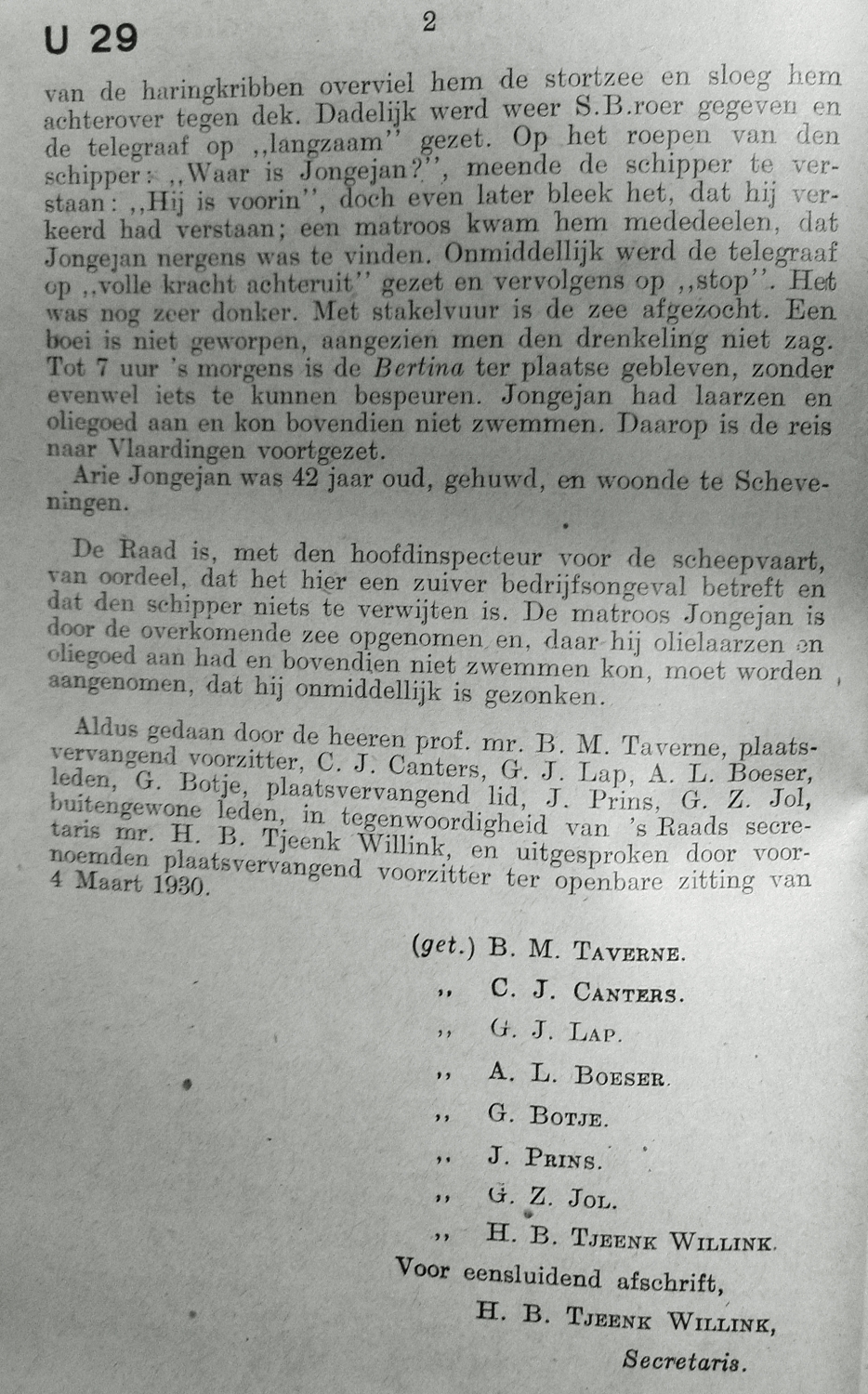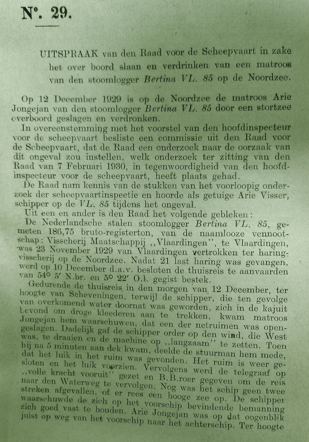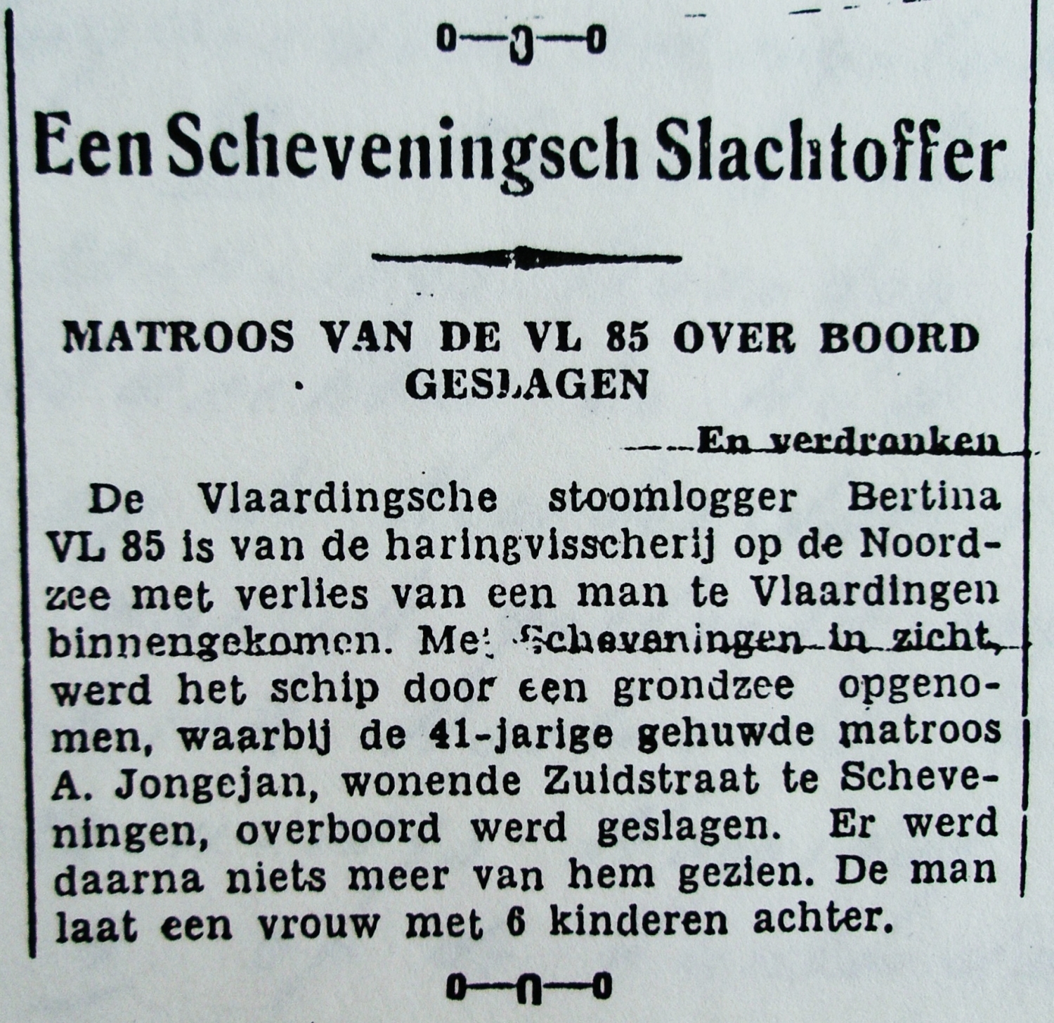 Door een stortzee sloeg Arie Krijn Jongejan overboord en werd niet meer gevonden.