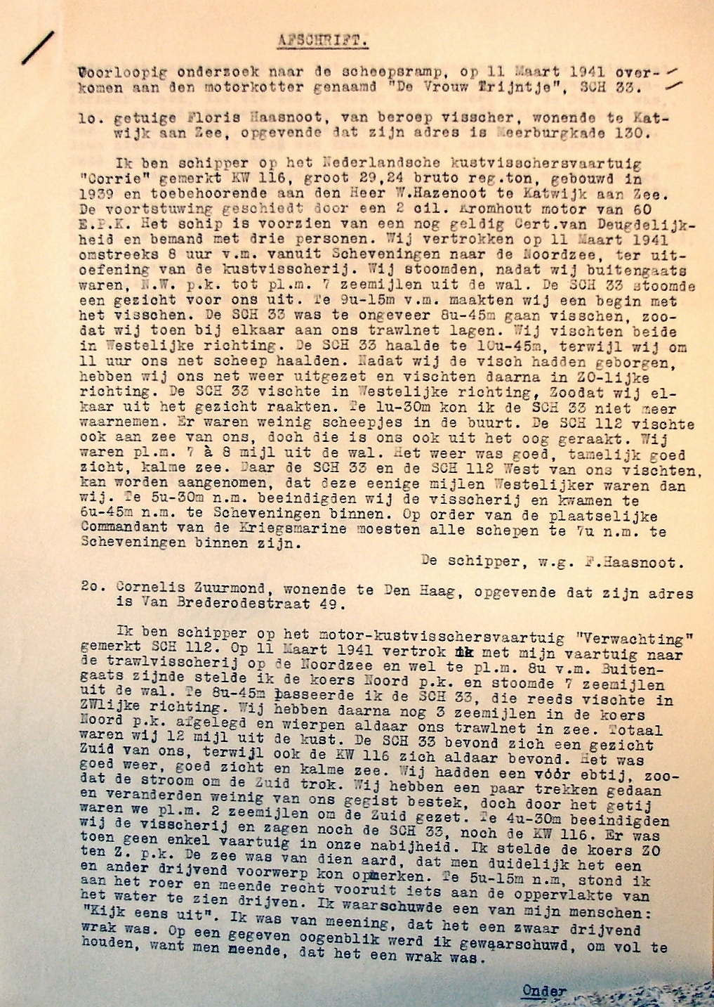 Hun vader -Willem Johannes van der Zwan- verdronk in augustus 1918 op de SCH 402 'Huibertje'.