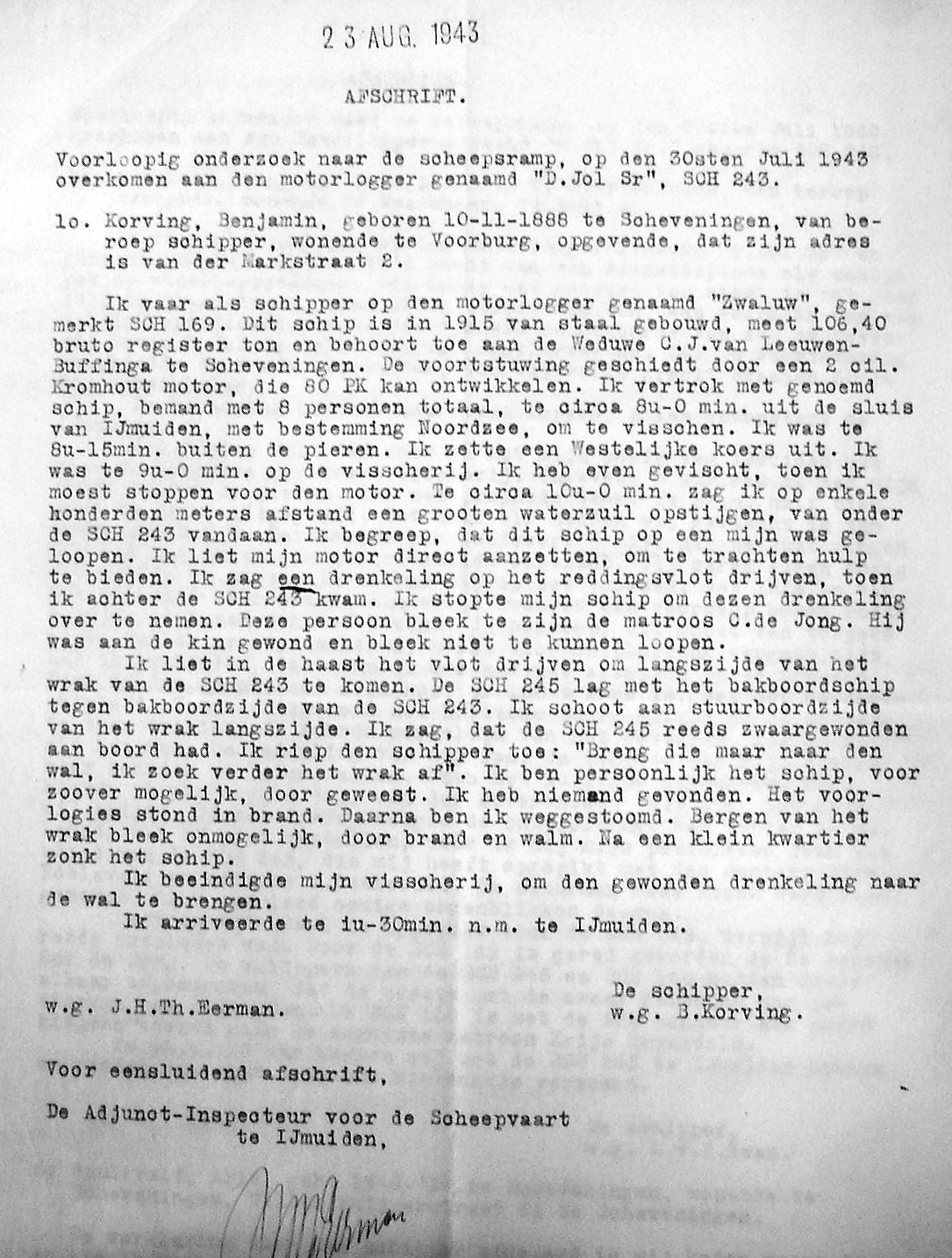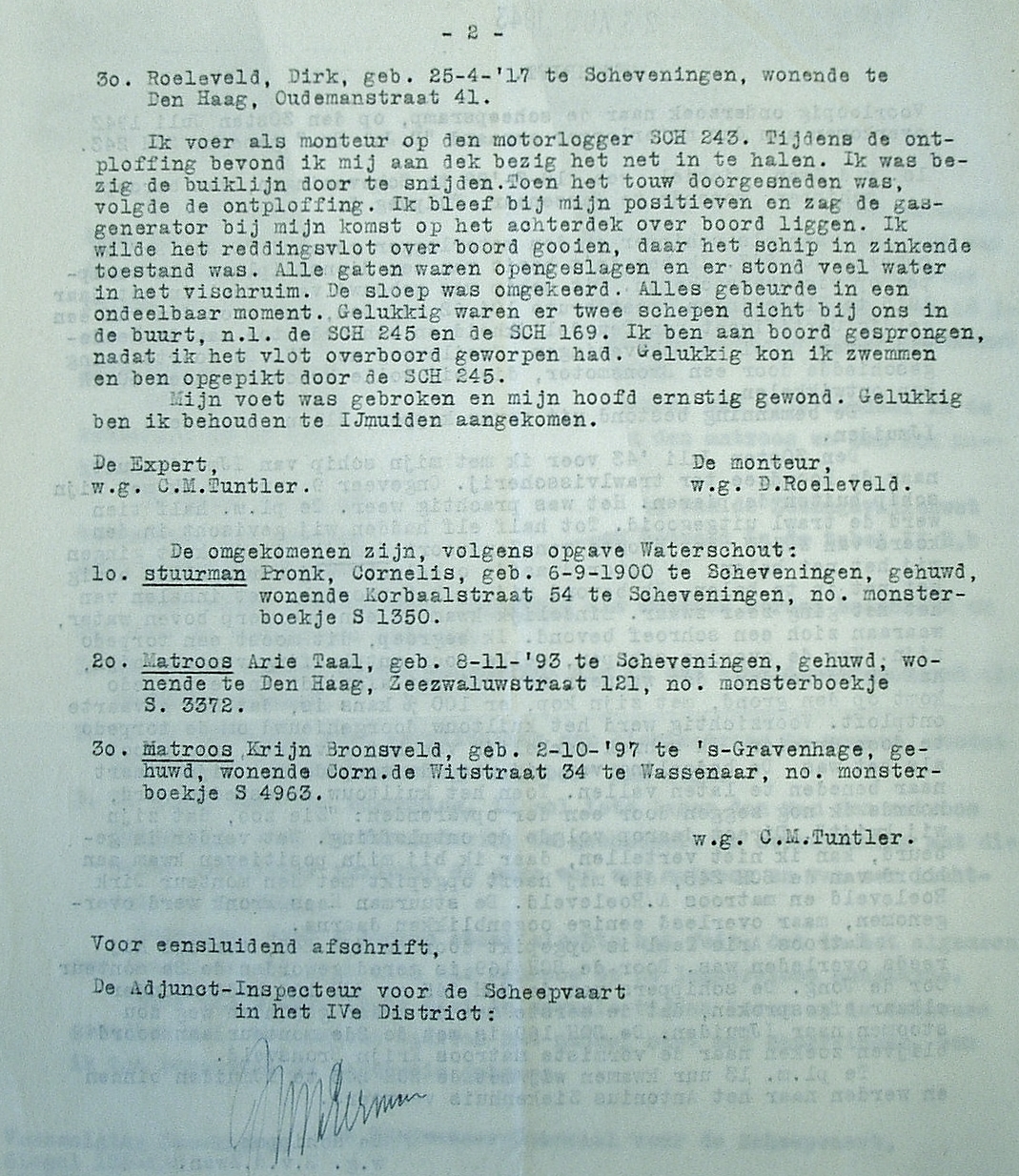 Arie Taal werd door de SCH 245 uit het water gehaald maar bleek reeds te zijn overleden.