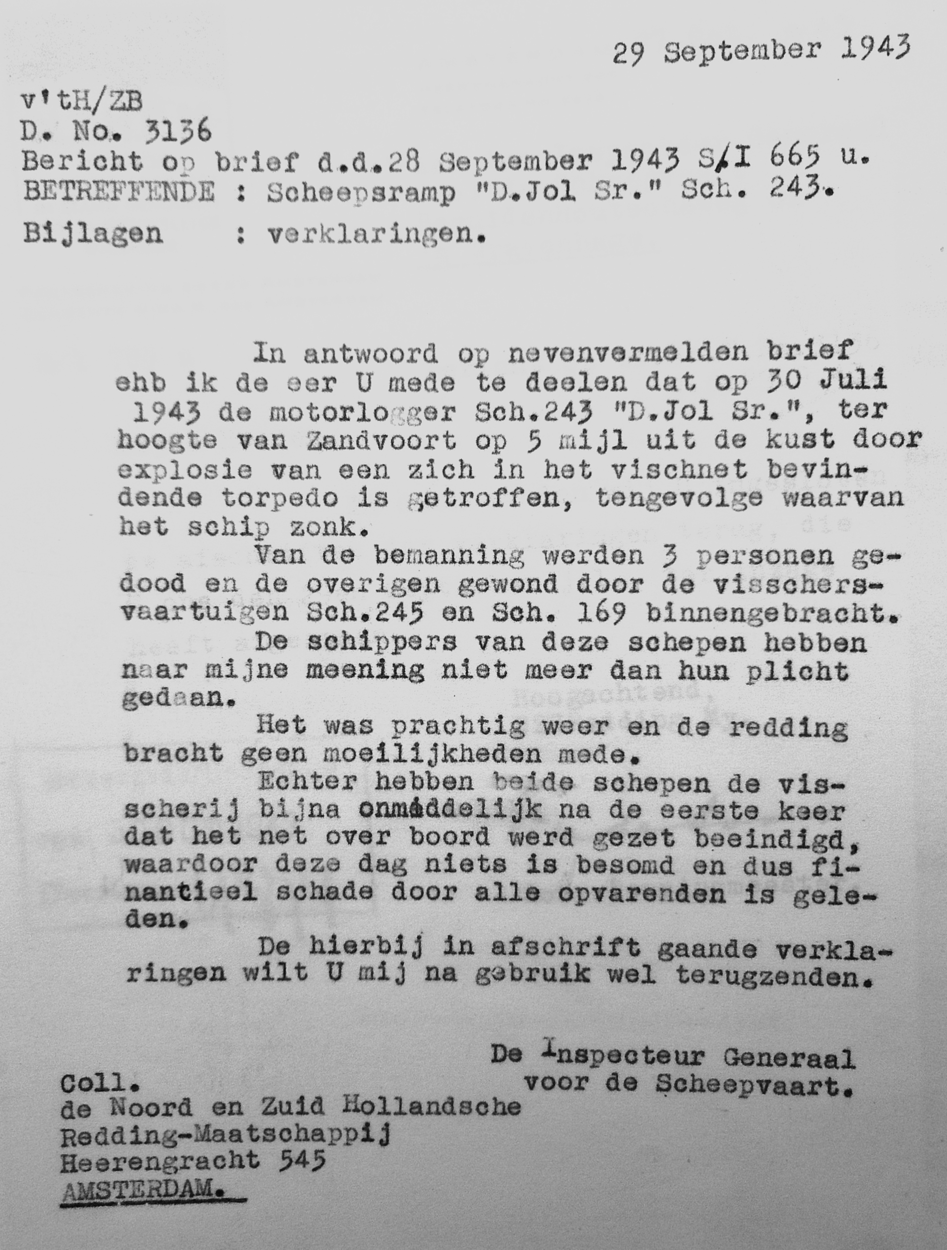 Door explosie van een torpedo omgekomen (1943)