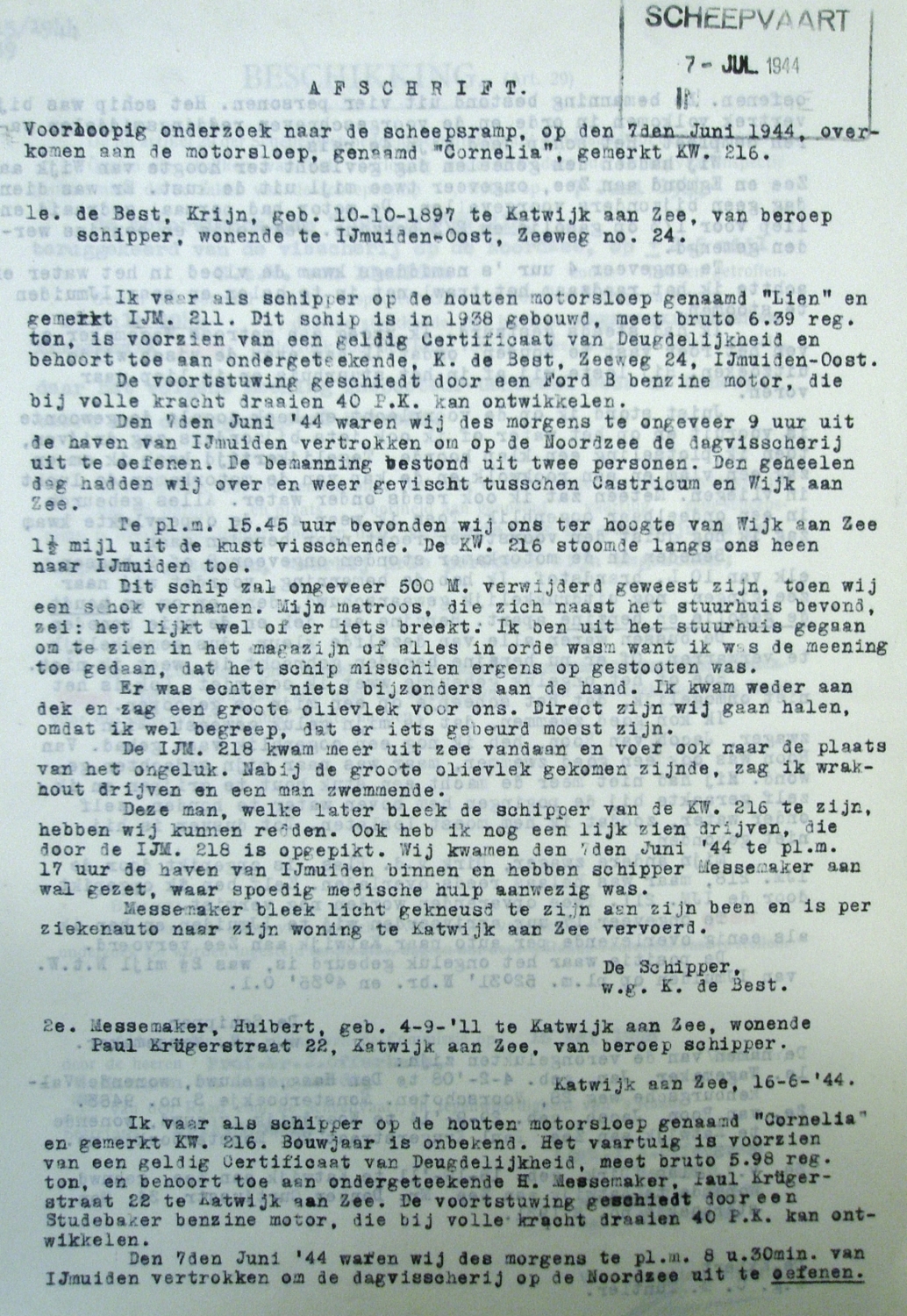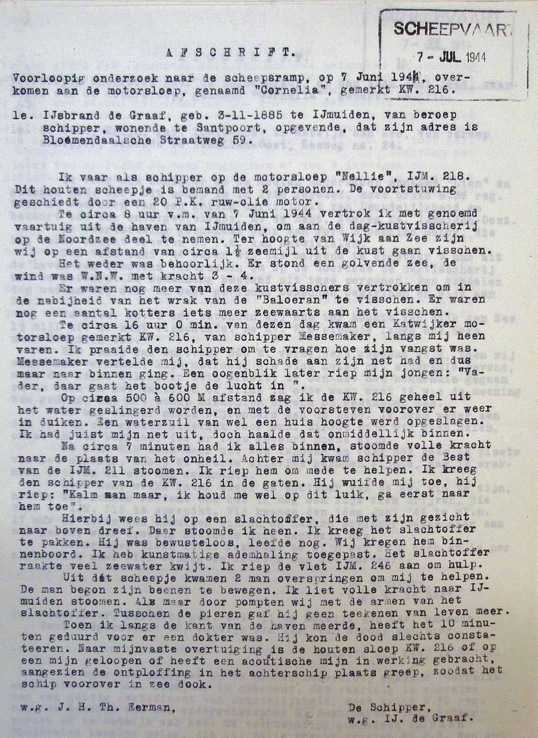 Jan Wagemaker spoelde op 16 juni op het strand van Castricum aan en werd op 20 juni te Voorschoten begraven.