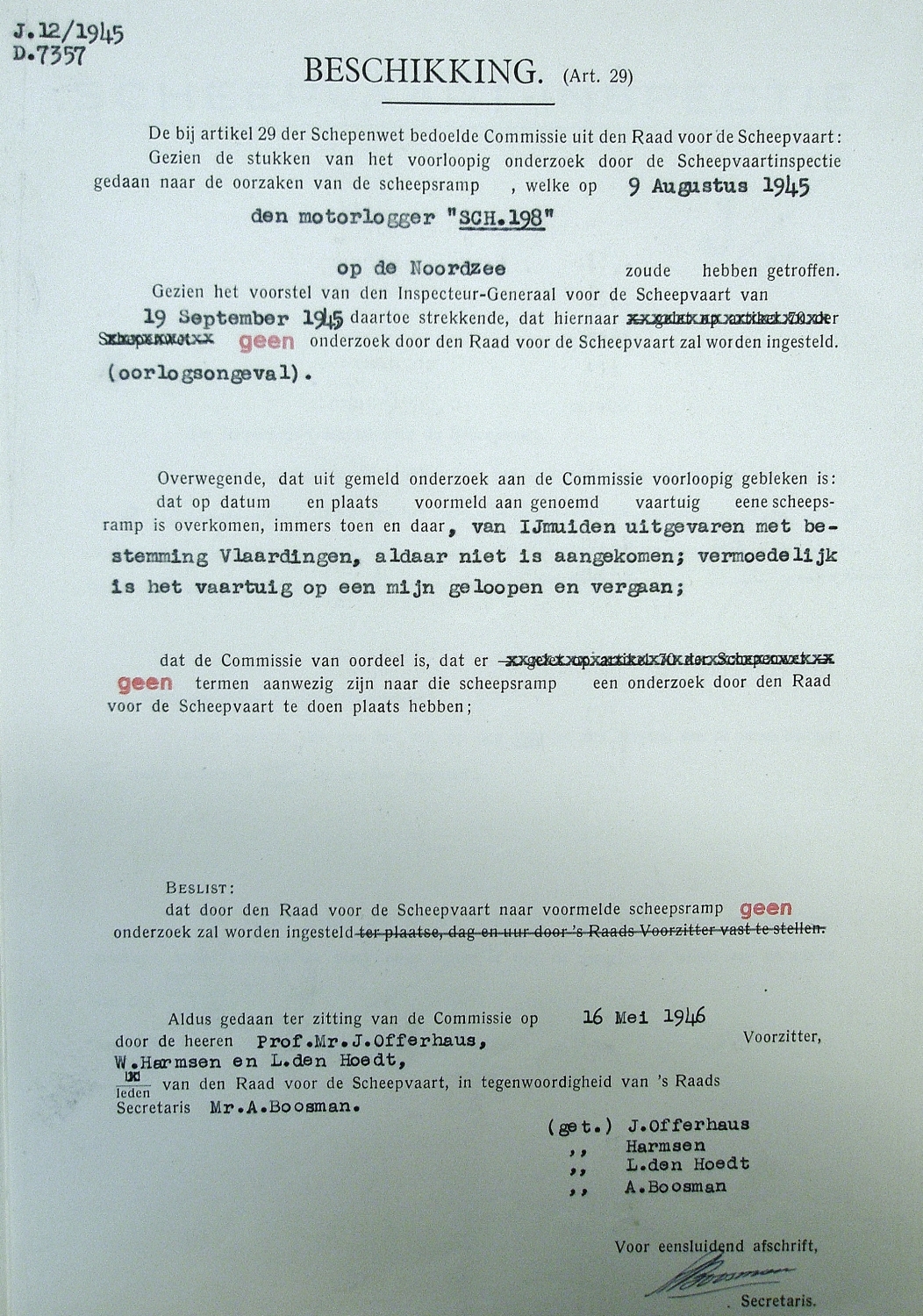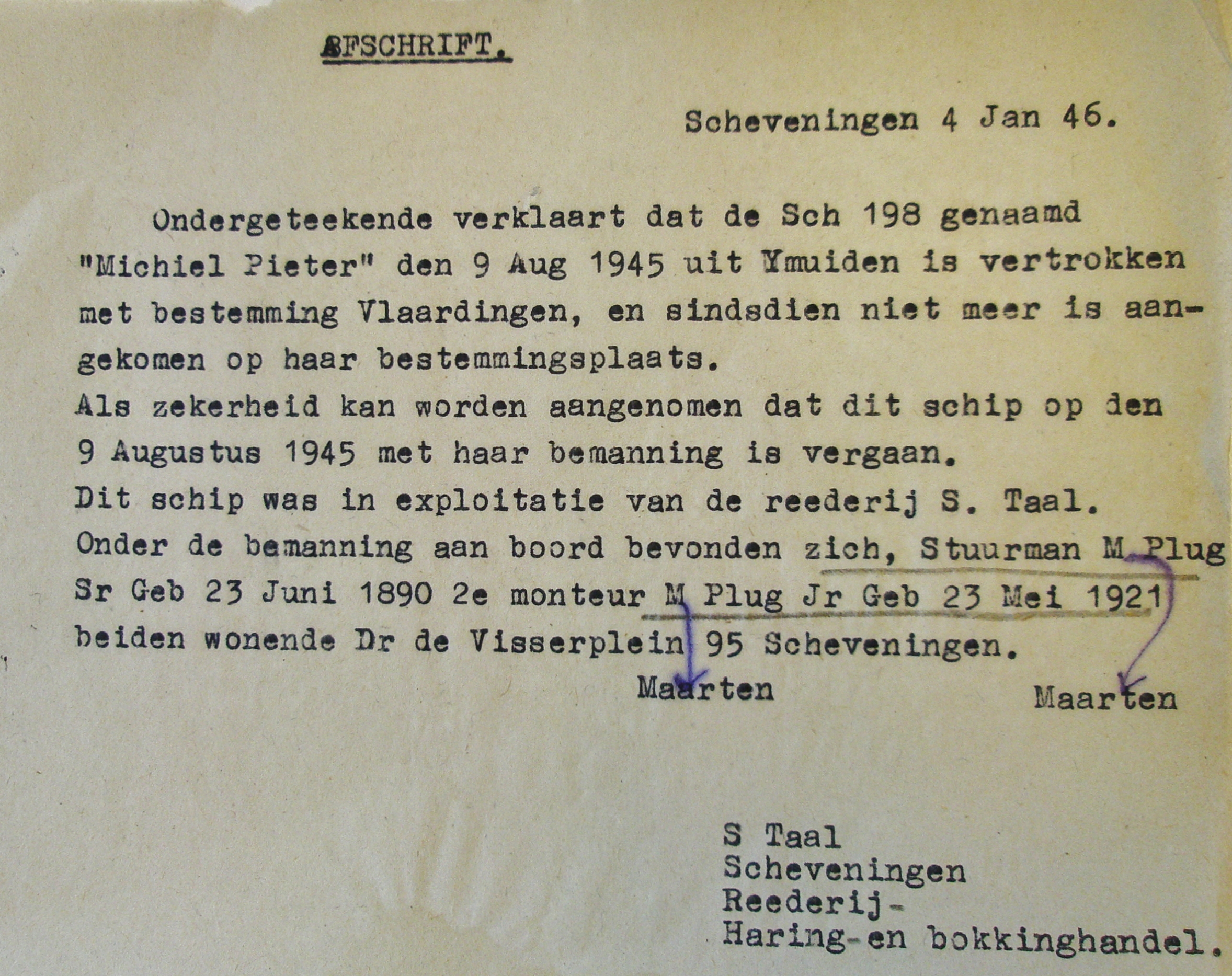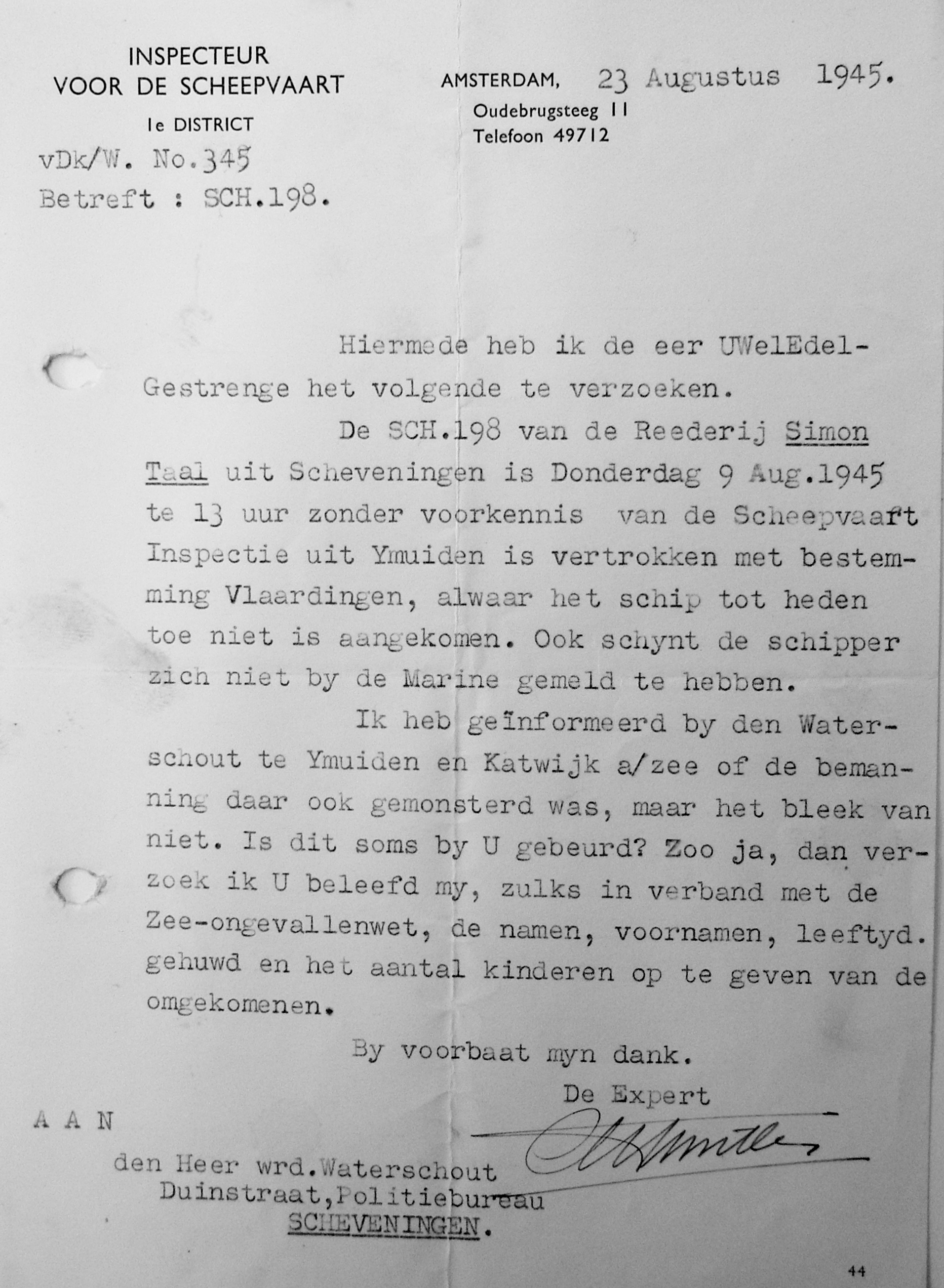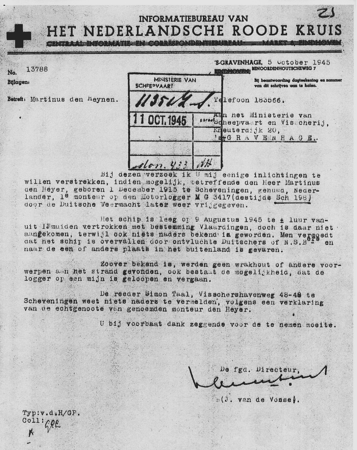 Bij het omvaren van IJmuiden naar Vlaardingen niet aangekomen (1945)