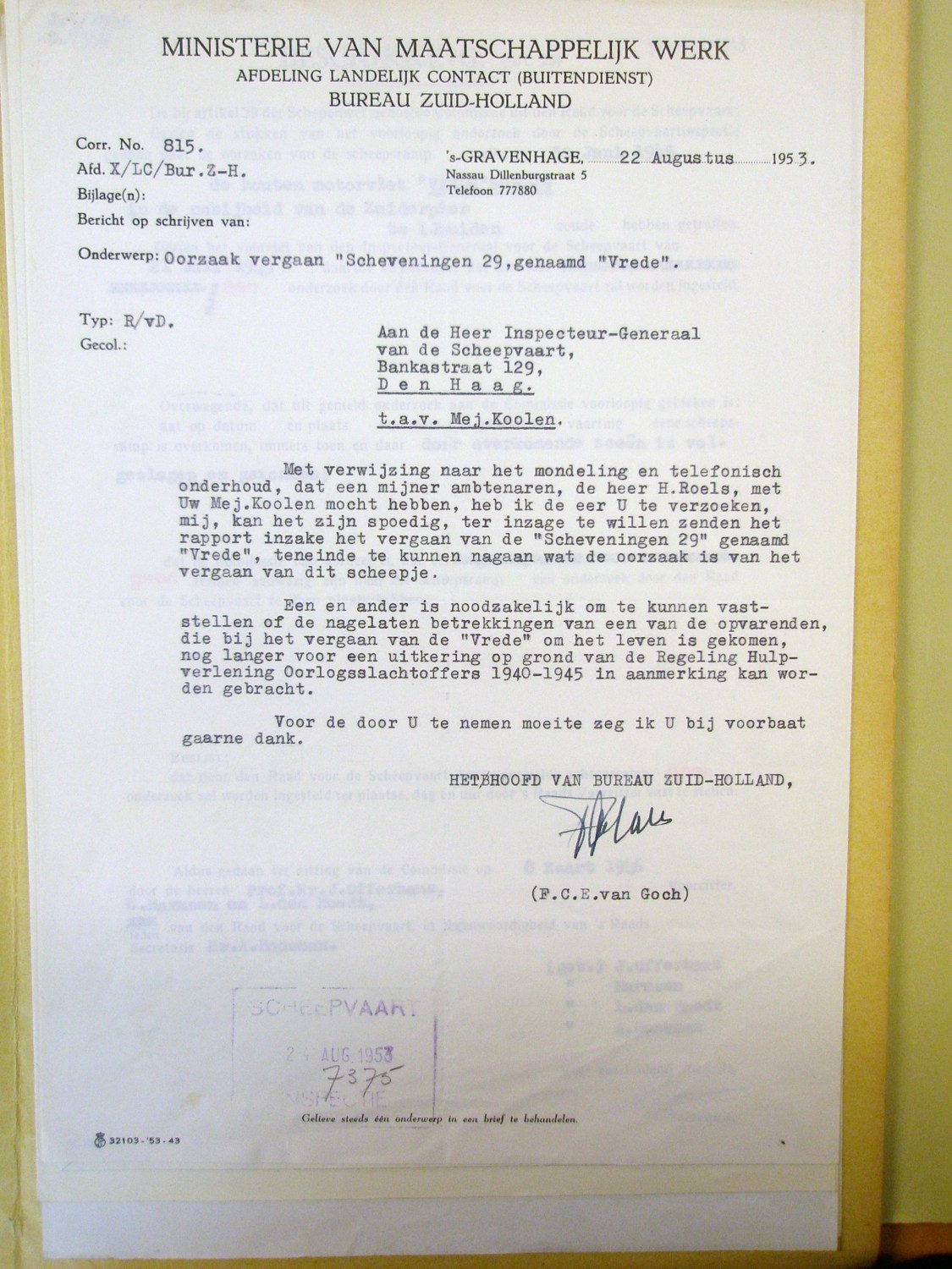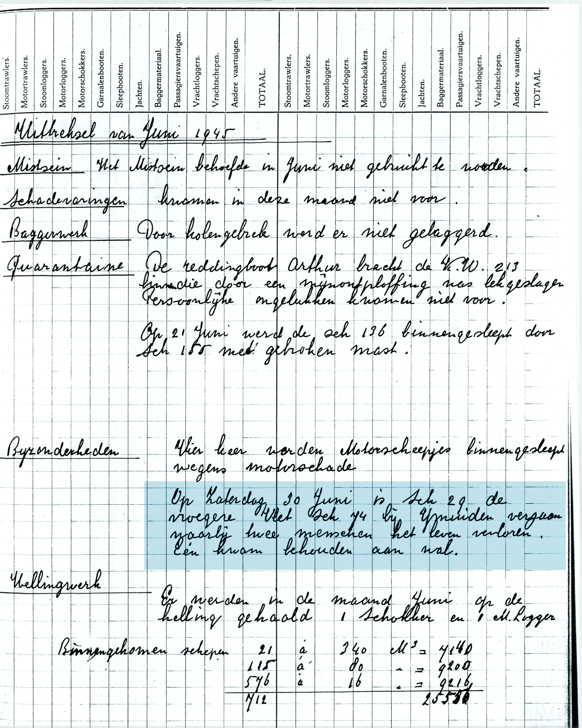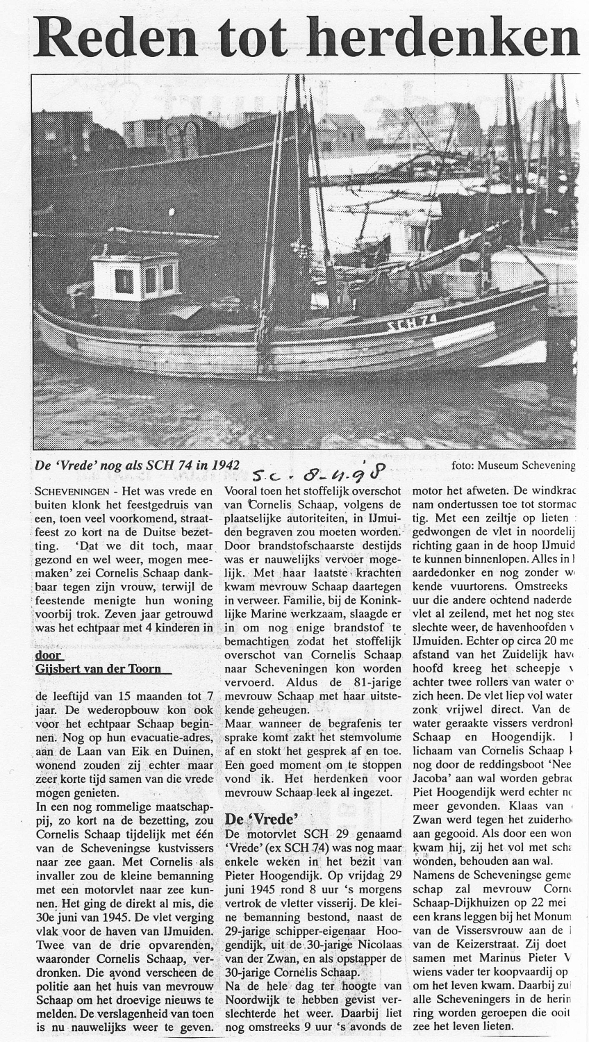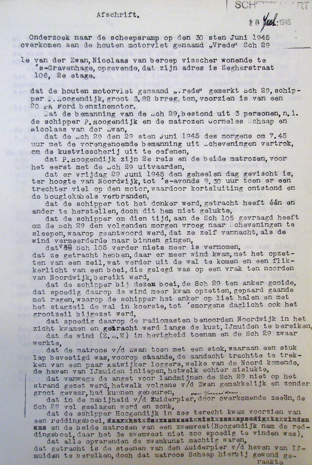 Met defecte motor voor de havenhoofden van IJmuiden vergaan. (1945)