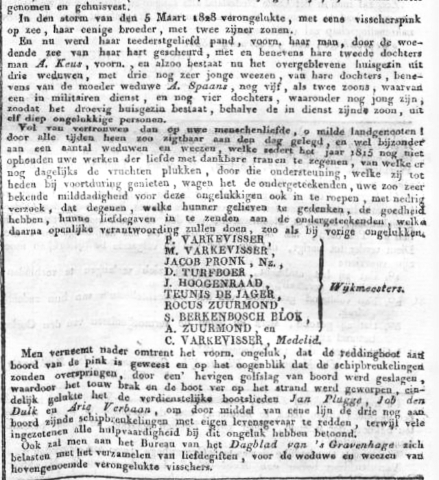 Voor het aanlanden en tijdens een zware stortzee op één der banken voor Scheveningen sloegen drie vissers overboord en verdronken.