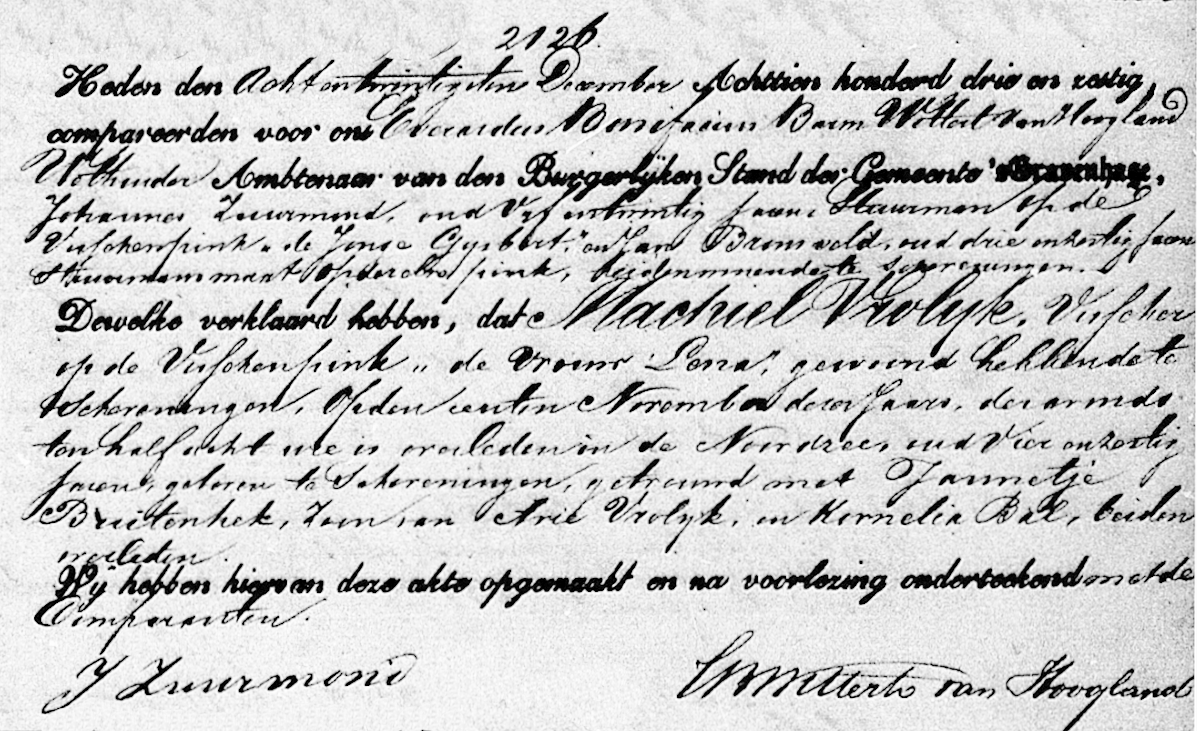 Op 5 november 1863 keerde de pink De Jonge Gijsbert terug uit zee. De stuurman daarvan, Johannes Zuurmond, bracht slechte tijding mee. Op 1 november, twee uur uit de wal van het Engelse Lowestoft, had hij de pink De Vrouw Lena, van dezelfde eigenaresse aangevaren. De pink, met een bemanning van 8 koppen, verdween vrijwel direct in de diepte.