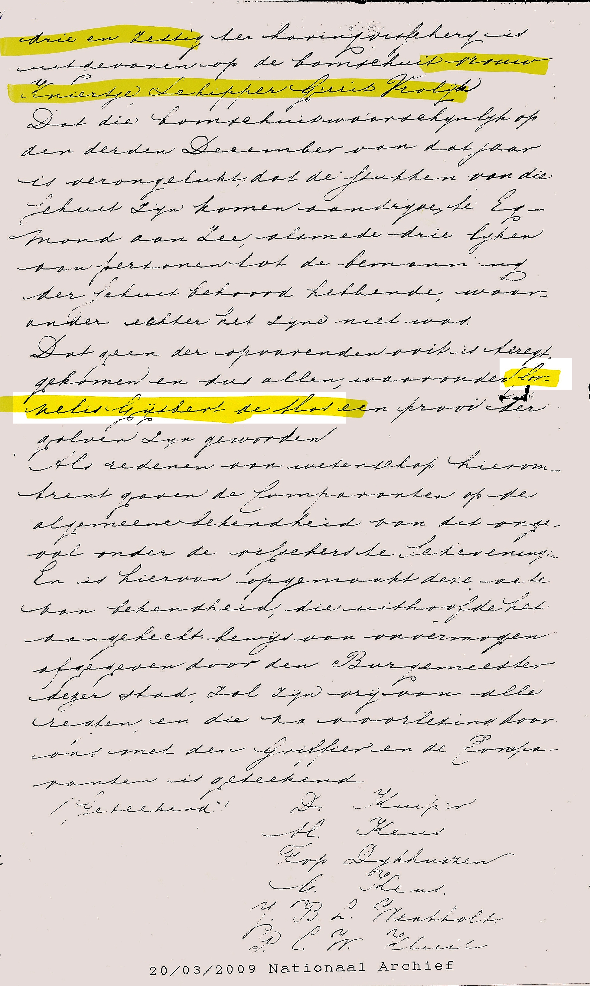 Eind november was de schuit voor de haringvisserij van Scheveningen vertrokken. Na de storm van 2 en 3 december spoelden op 10 december tussen Callantsoog en Petten twee lijken aan. Bij Egmond a/zee spoelden vier lijken aan. De nabestaanden vertrokken daags daarna naar Egmond a/zee voor de teraardebestelling. Enige goederen van de schuit dreven later ook op het strand bij Egmond a/zee aan.
