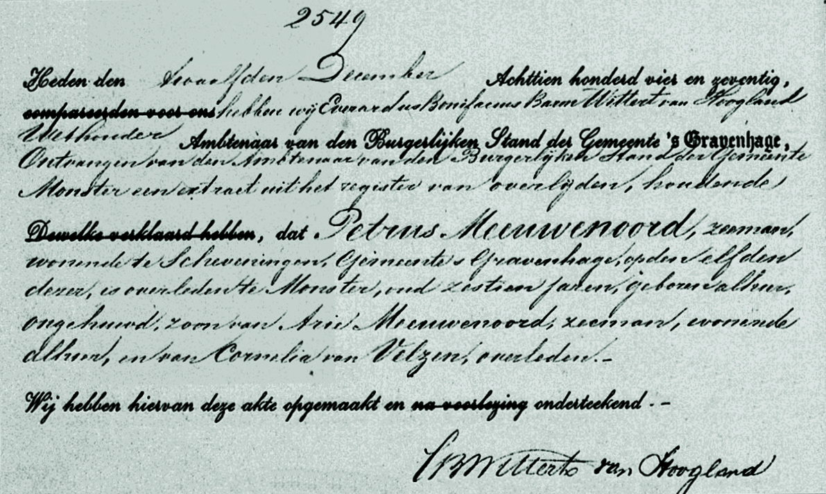 * Petrus Meeuwenoord - de zoon van de schipper- spoelde op 11 december op het strand nabij Monster aan.