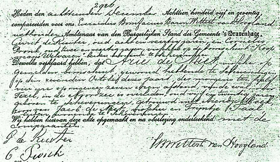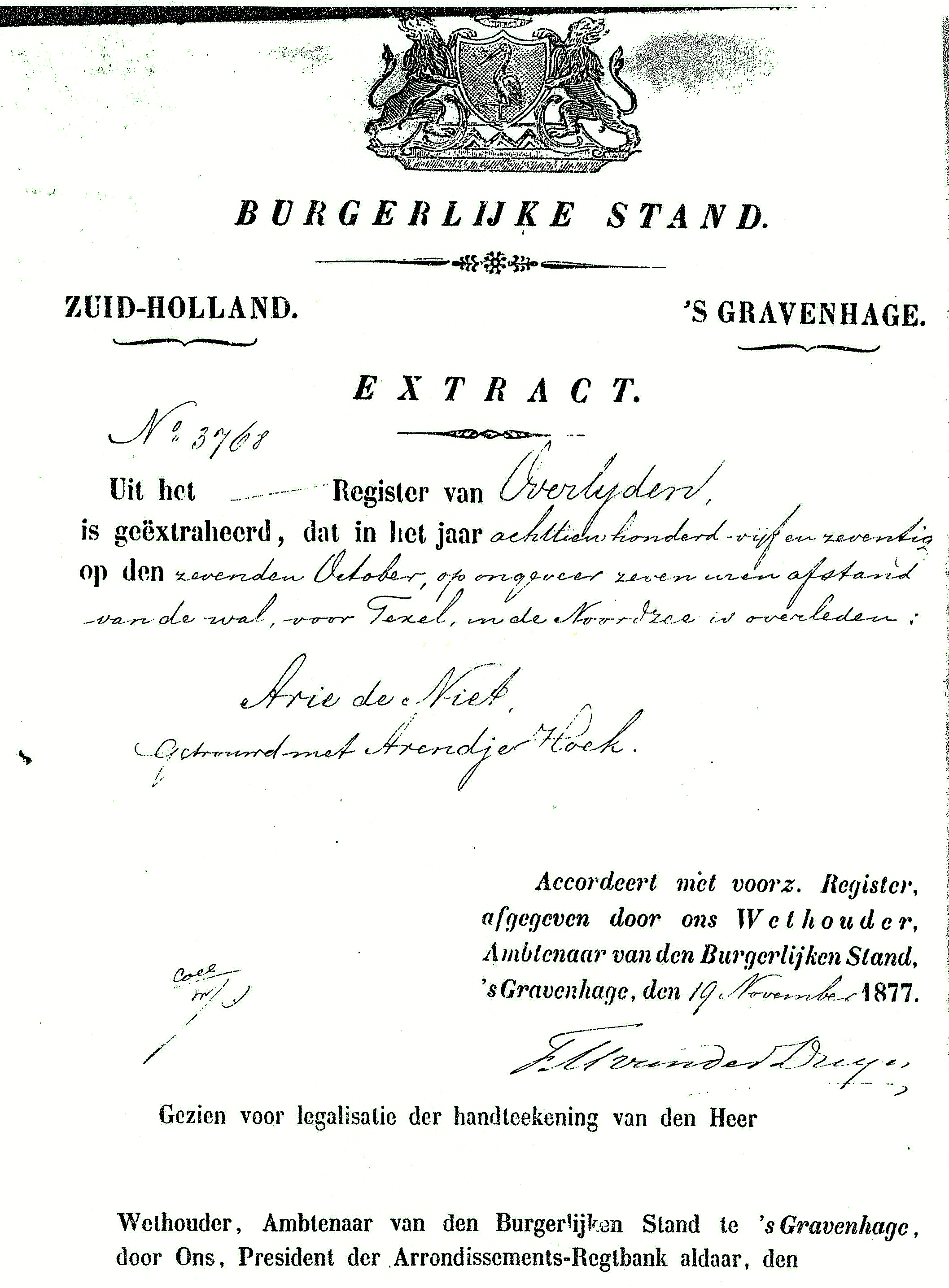 Naar verluidt is Arie de Niet in de Noordzee overleden hetgeen duidt op verdrinking.