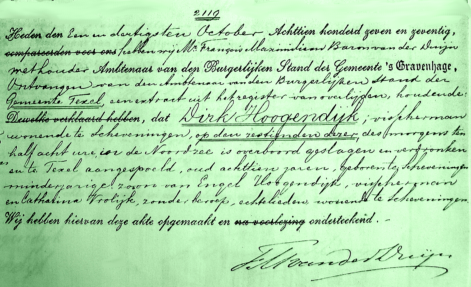 * Dirk Hoogendijk spoelde eind oktober op het strand bij Texel aan.