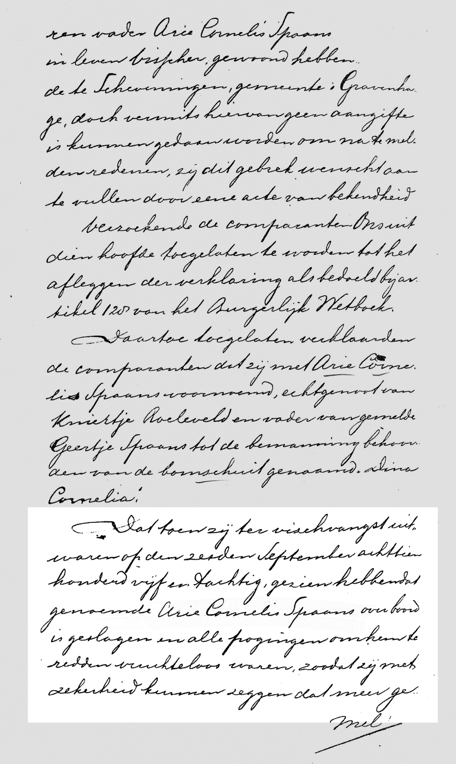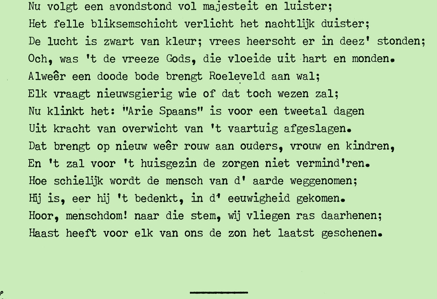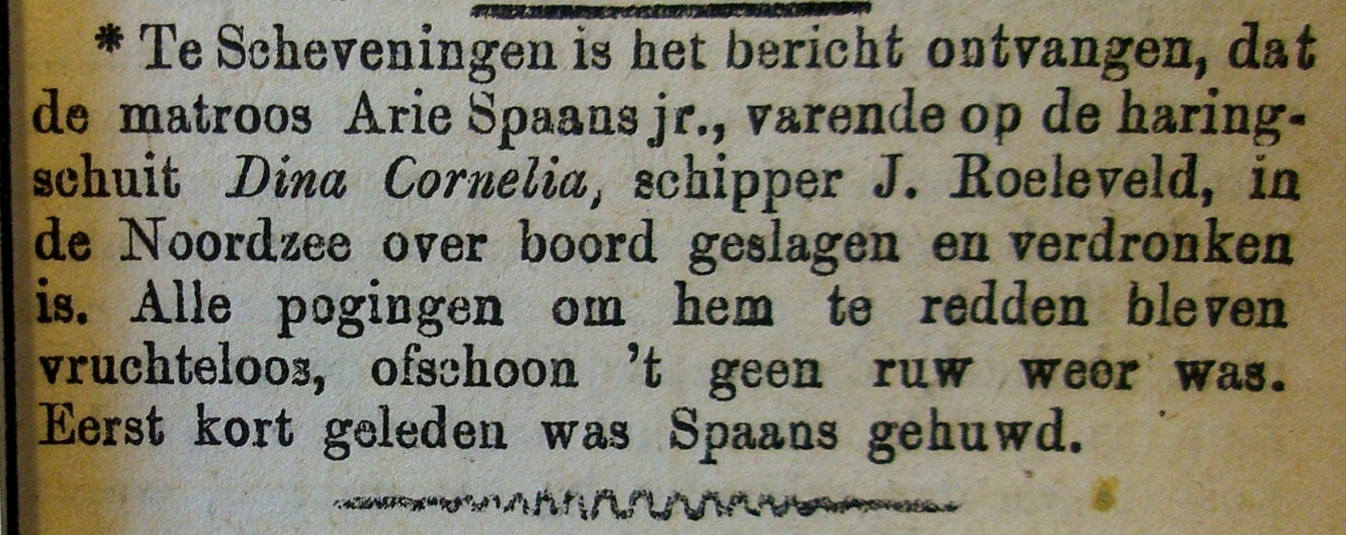 Ruw weer was dit keer niet de oorzaak maar niettemin was matroos Arie Cornelis Spaans overboord geslagen en ondanks uiterste pogingen was hij echter niet meer te pakken.