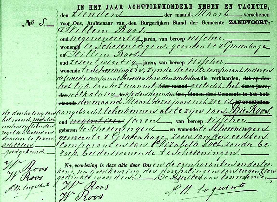 Arie Roos (23) en Arie Roos (18) zijn broers. De vermiste 18-jarige Arie Roos is op de 9e maart door een Katwijker bomschuit uit zee aangebracht.