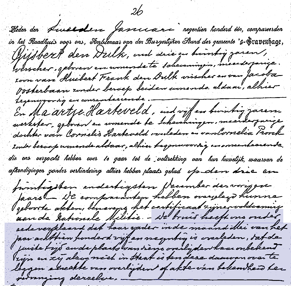 Al bijna vier weken was de bomschuit Arie en Daniël voor zijn eerste haringreis in zee en sindsdien was er taal nog teken van het vaartuig vernomen. Het was weliswaar niet ongebruikelijk dat een schuit voor de haringvisserij zelfs het dubbele aantal weken in zee was, maar de schuit was ook niet op de haringgronden waargenomen. Daarnaast was de schuit ook niet in een Engelse of Schotse haven gezien. Het was destijds een vaste gewoonte dat de haringvloot op de eerste reis het Schotse Lerwick binnenliep waarbij soms aan de reder of familie een brief werd verzonden. De Arie en Daniël werd daar echter niet gezien en van een brief was geen sprake geweest. In juni spraken vissers -die na hun eerste haringreis van zee kwamen- dat het rond half mei op de Doggersbank - destijds ook wel ’t Zandt’ genoemd - behoorlijk had gestormd. Bovendien was er drijvend materiaal zoals manden e.d. waargenomen. Helaas konden de teruggekeerde vissers niet meer duidelijkheid geven. Weken van ongerustheid braken vervolgens in de families van de bemanning te Scheveningen aan.