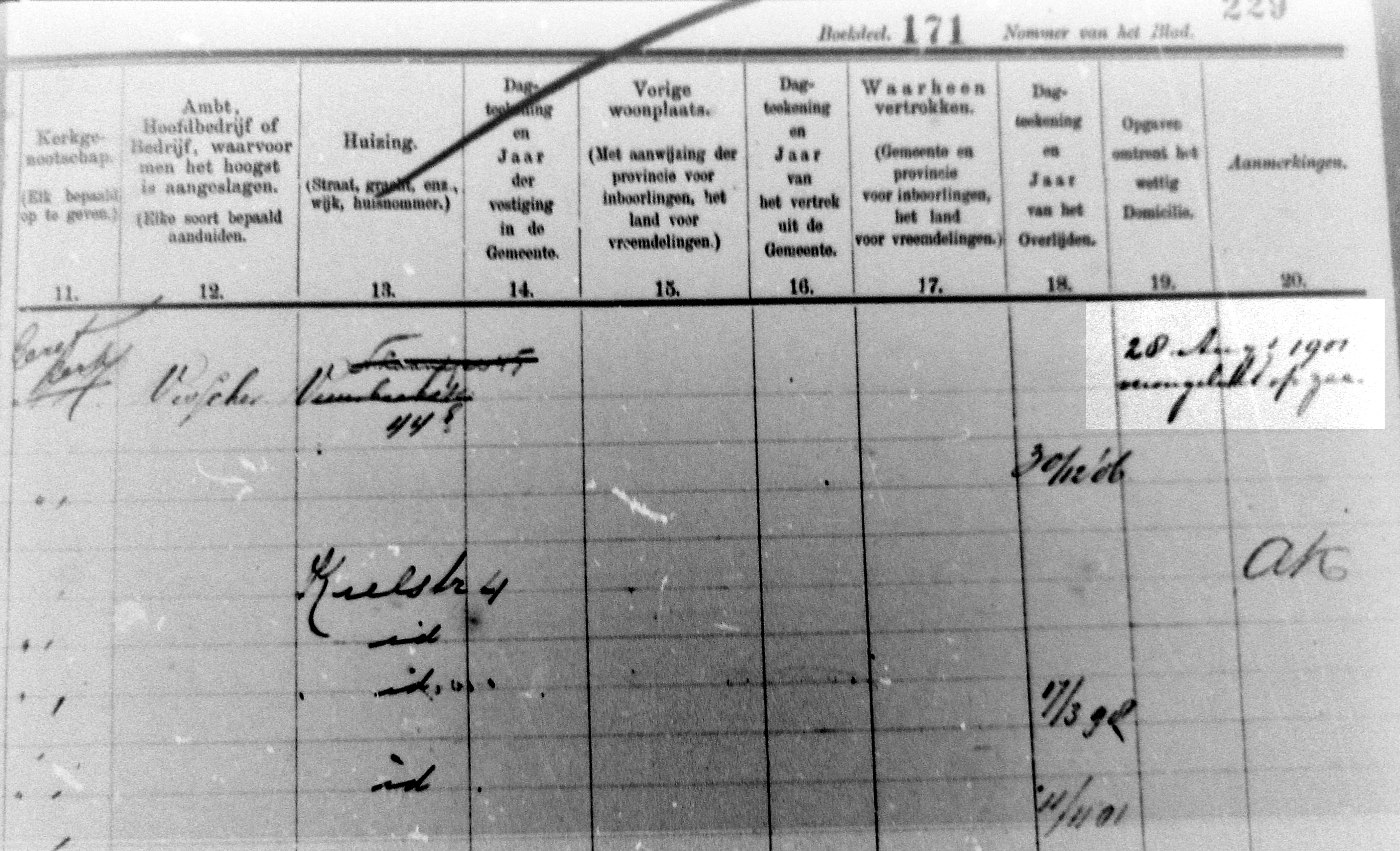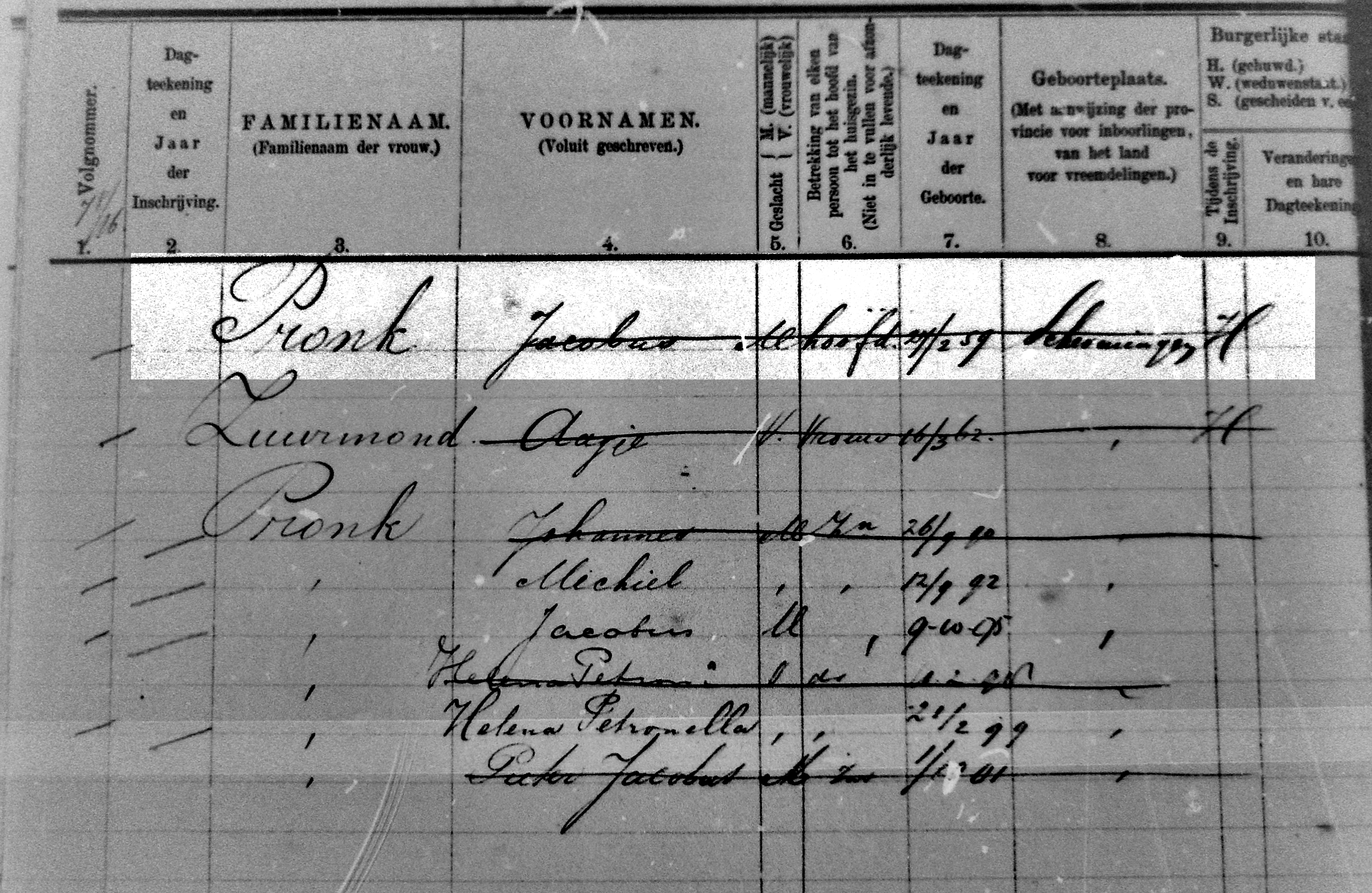 Op 29 augustus liep de bomschuit te Vlaardingen binnen, echter zonder de schipper. De bemanning rapporteerde dat het op de 28e door een ontzettende hoge zee werd overvallen. Alles wat niet spijkervast zat spoelde van dek. Met al het materiaal mee verdwenen een matroos en de schipper eveneens in zee. De matroos kon zich nog redden met mee gesleurd touwwerk aldus het krantenbericht van destijds. Schipper Jacobus Pronk was echter te ver weggedreven en verdronk jammerlijk.