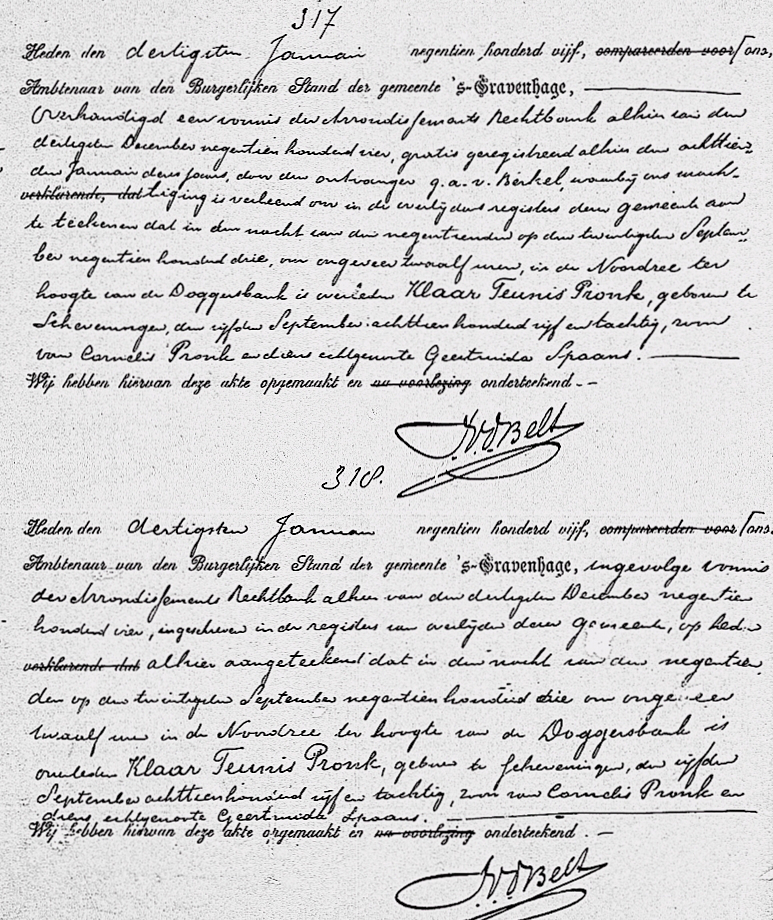 Cornelis Spaans: in het Bevolkingsregister 1895-1913 wordt het foutieve jaartal 1904 vermeld.