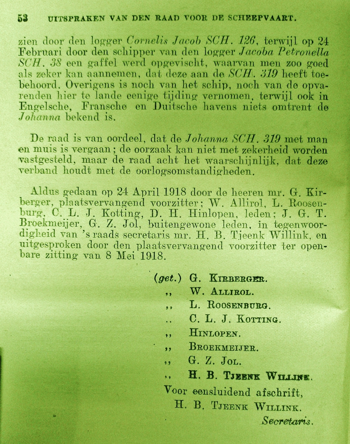 * Leendert Arie Taal: zijn vader Johannes Cornelis,- kwam rond dezelfde datum om op de SCH 134 'President Commissaris van den Bergh'