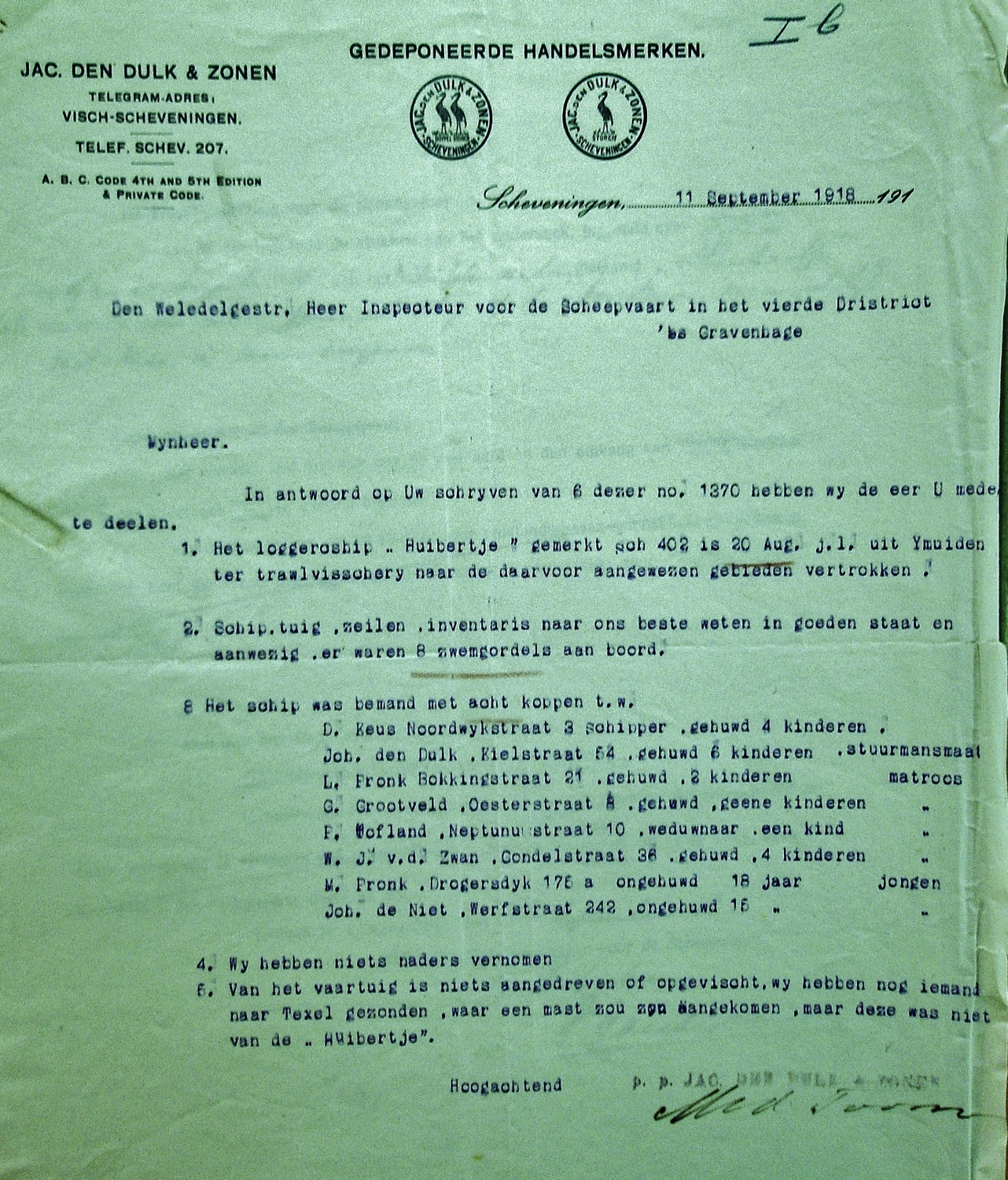 Dirk Keus: zijn zoon Johannes- kwam in 1926 om op de VL 213 'Theodoor.'