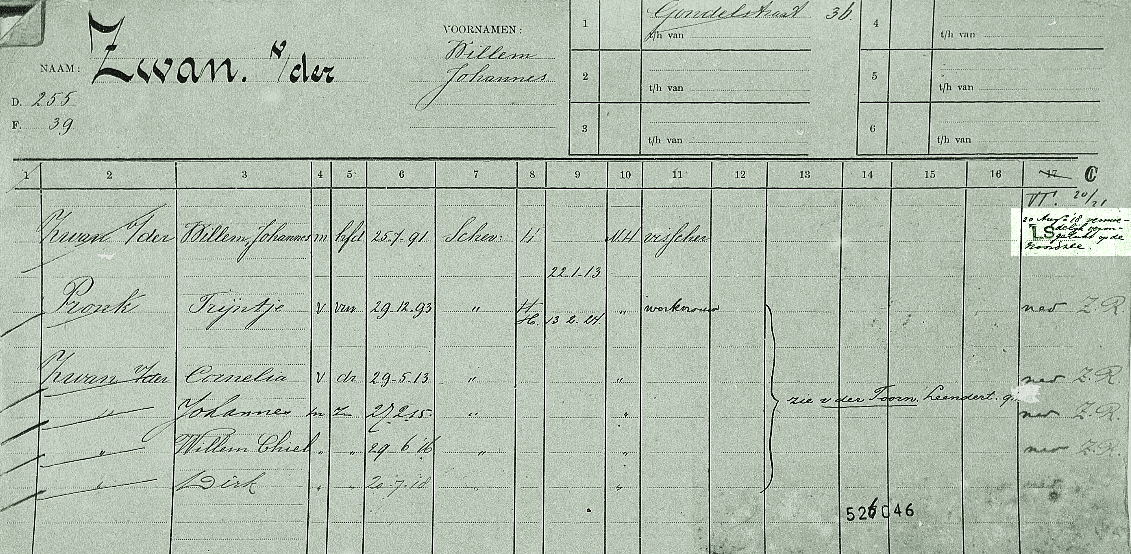 Willem Johannes van der Zwan: zijn drie zoons Johannes, Willem Chiel, en Dirk kwamen in 1941 gelijktijdig om op de SCH 33 'De Vrouw Trijntje.'